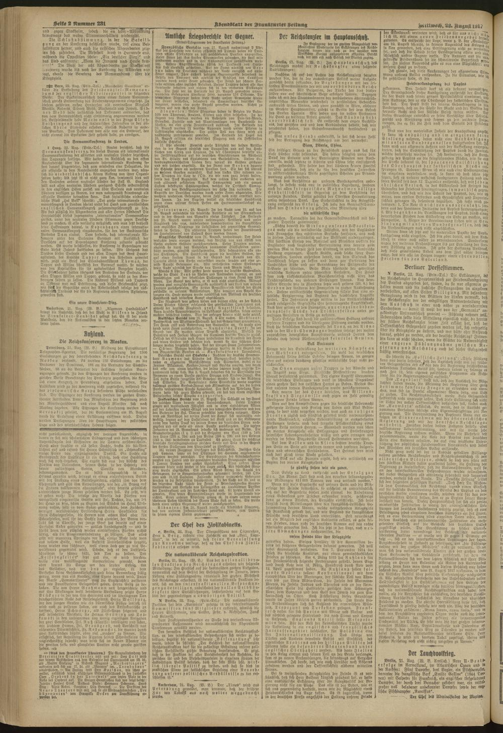 22.08.1917 = Nr. 231. Abendblatt