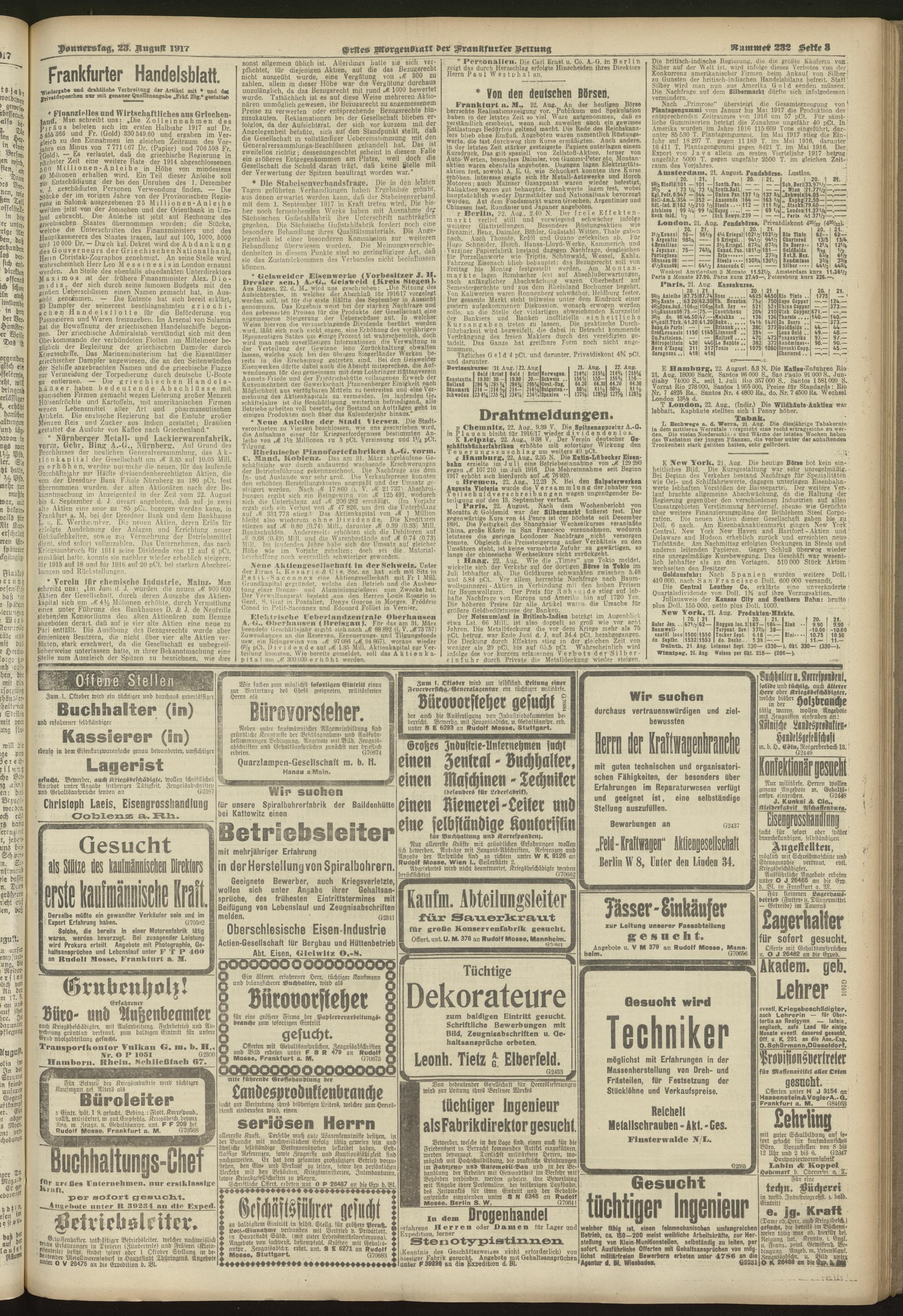 23.08.1917 = Nr. 232. Erstes Morgenblatt