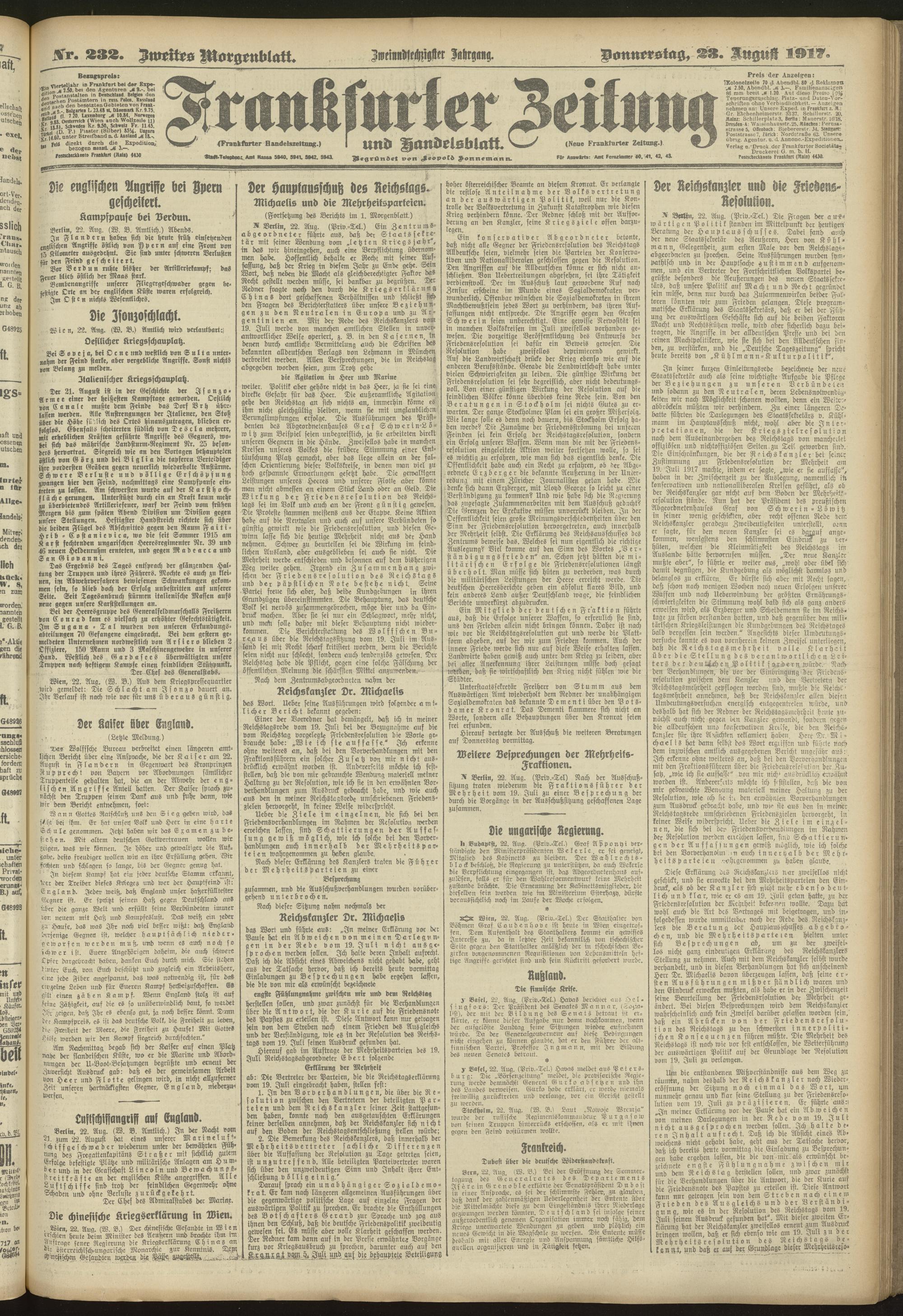 23.08.1917 = Nr. 232. Zweites Morgenblatt