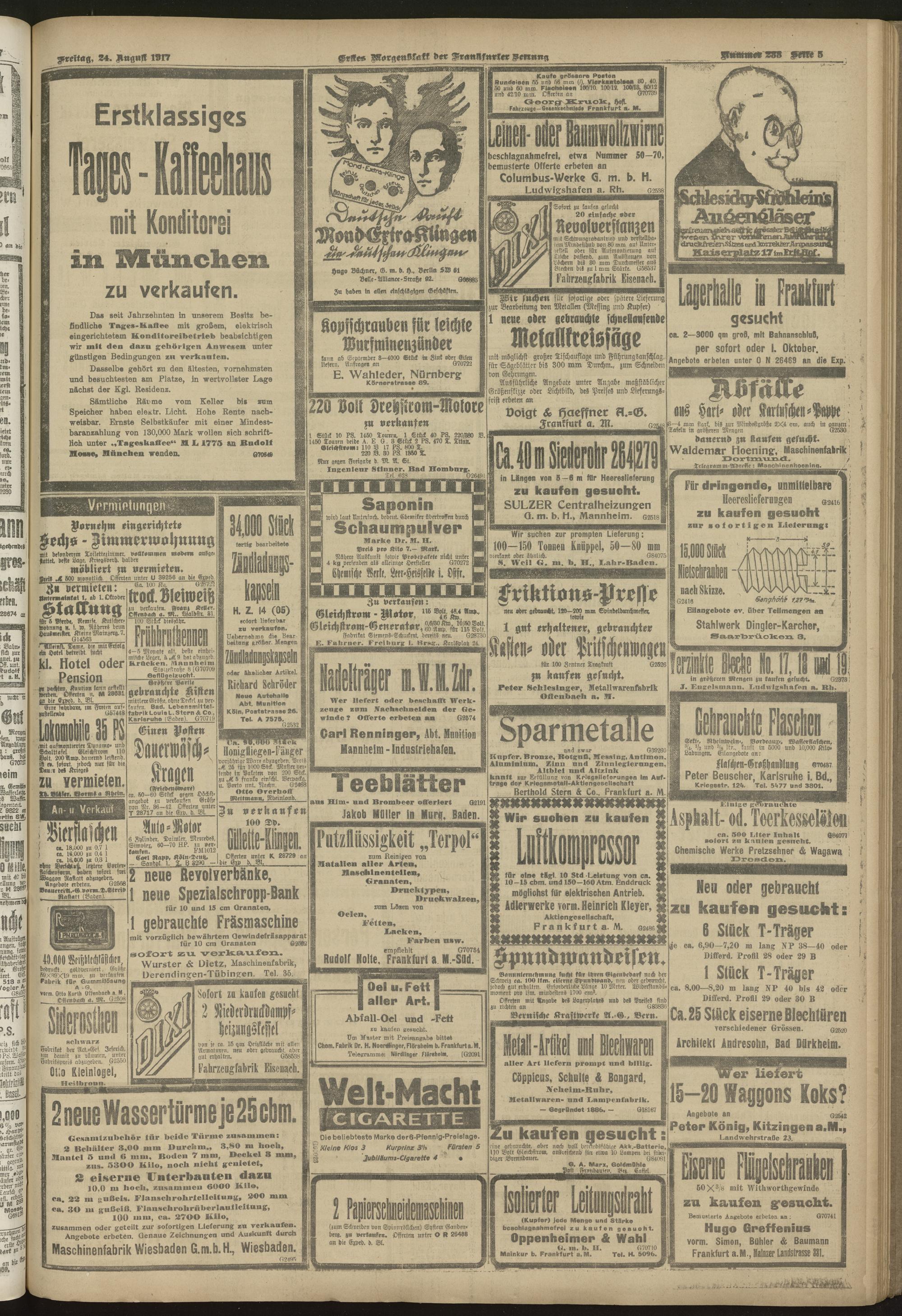 24.08.1917 = Nr. 233. Erstes Morgenblatt