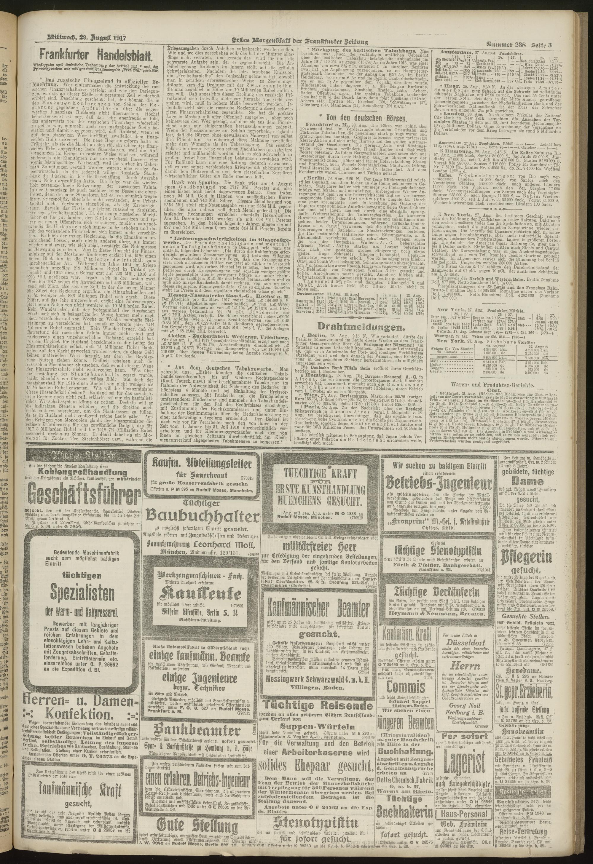 29.08.1917 = Nr. 238. Erstes Morgenblatt