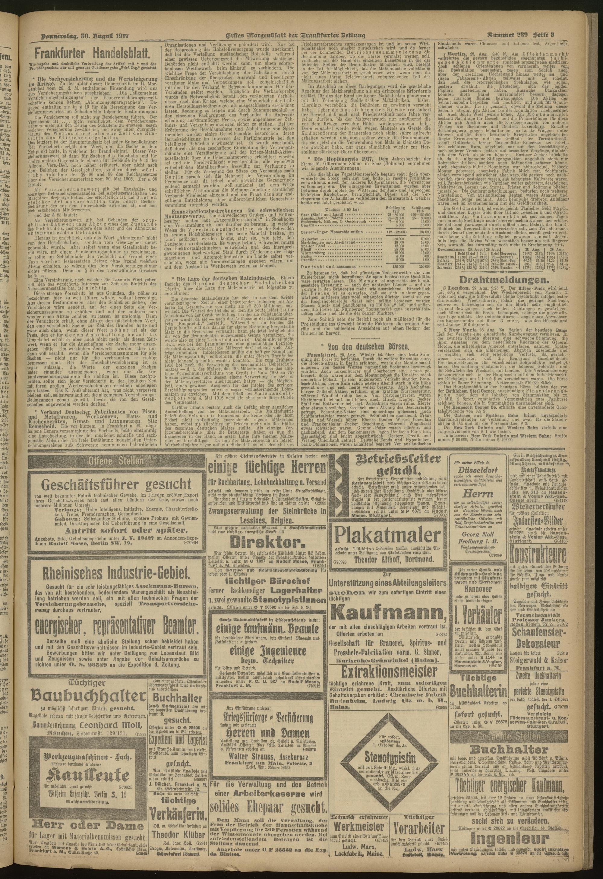 30.08.1917 = Nr. 239. Erstes Morgenblatt