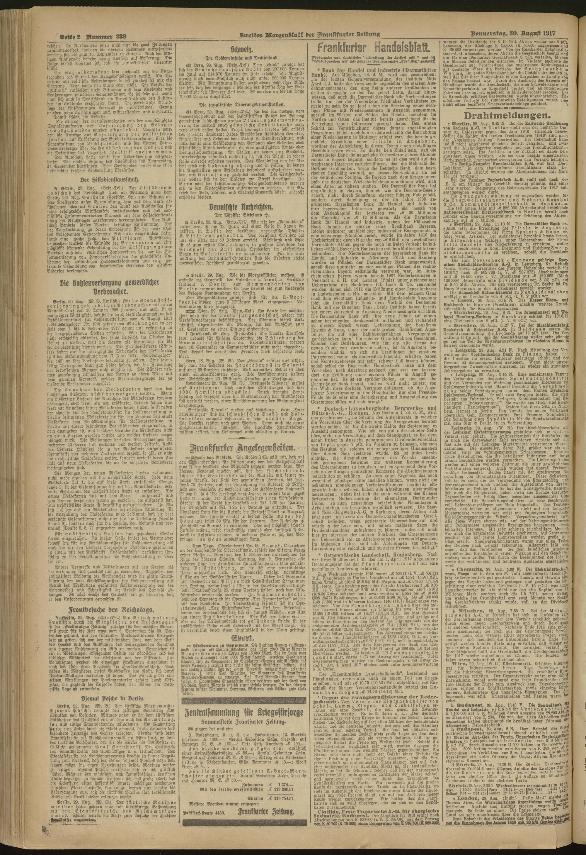 30.08.1917 = Nr. 239. Zweites Morgenblatt