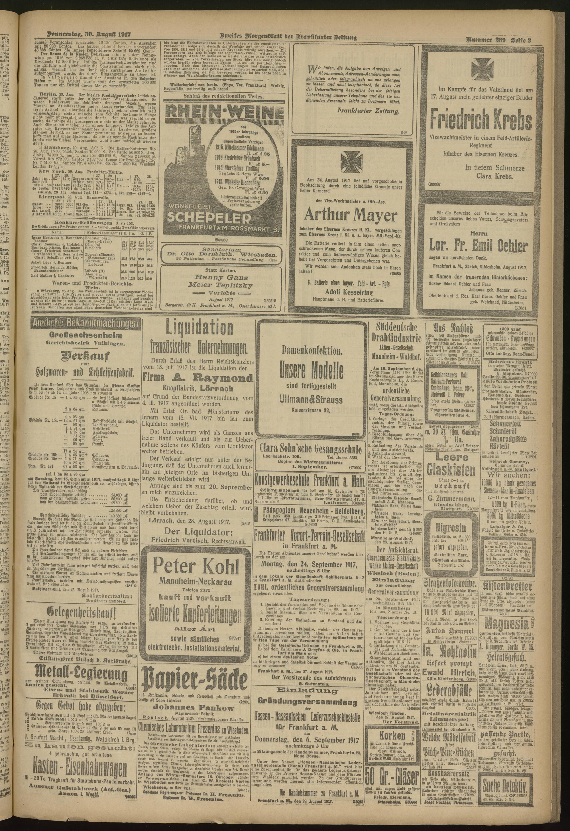 30.08.1917 = Nr. 239. Zweites Morgenblatt