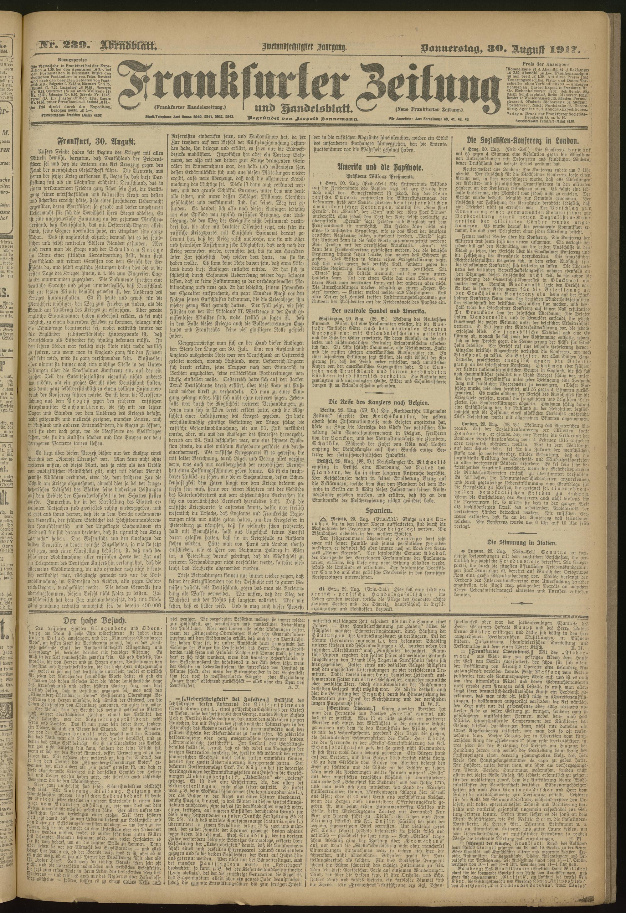 30.08.1917 = Nr. 239. Abendblatt