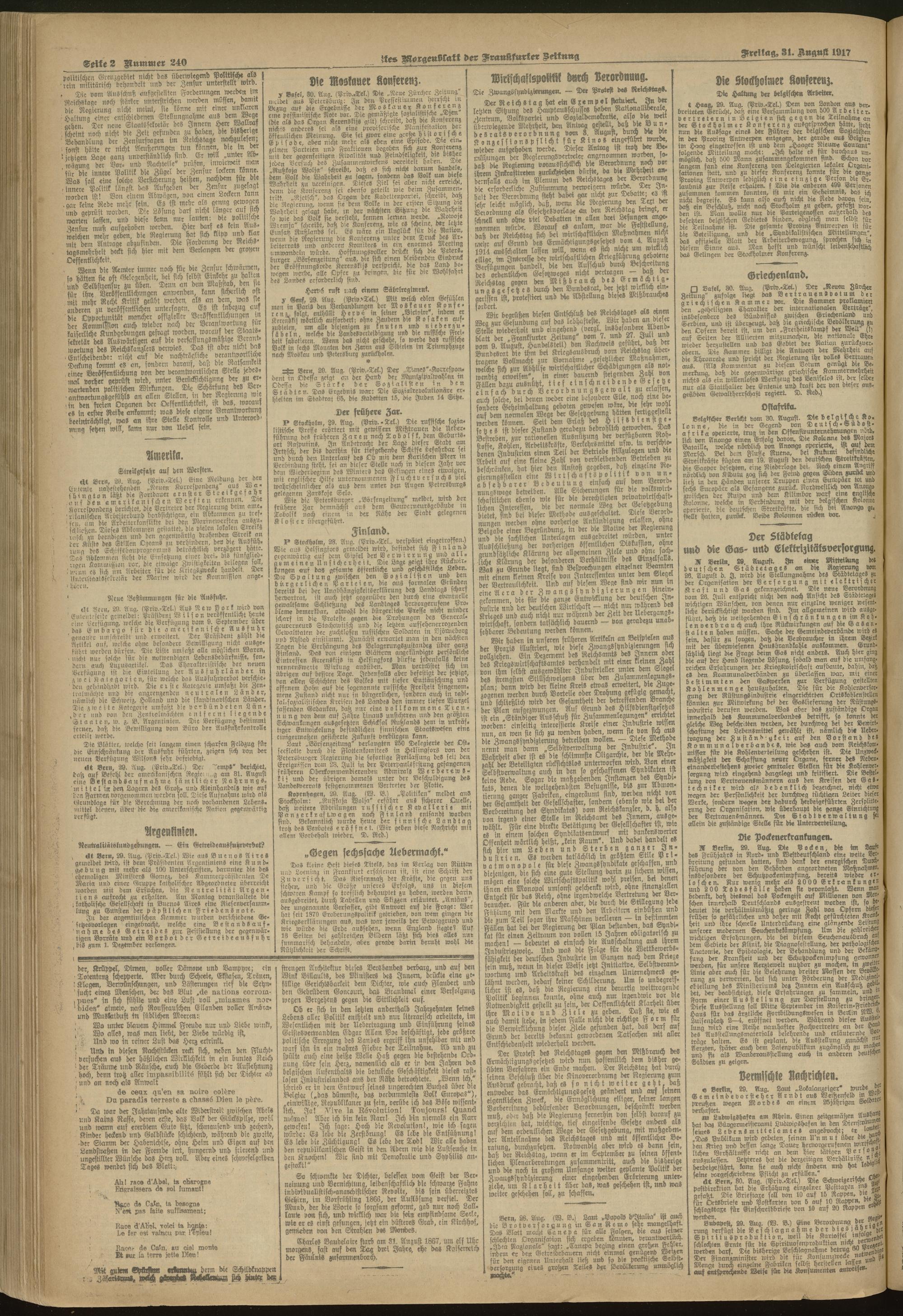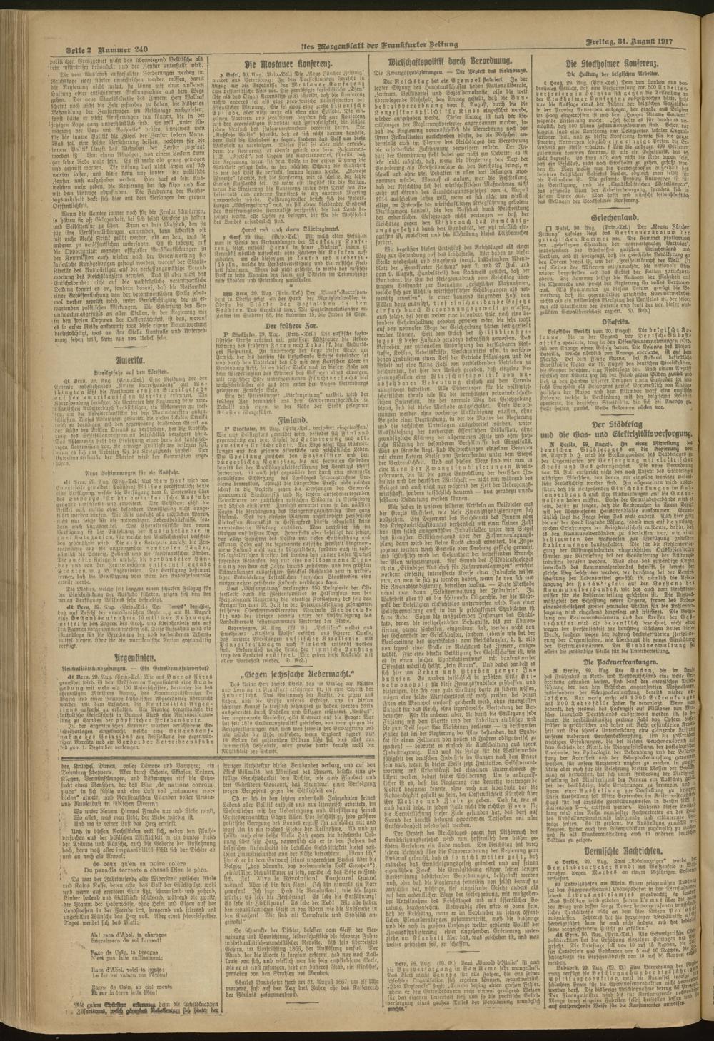 31.08.1917 = Nr. 240. Erstes Morgenblatt