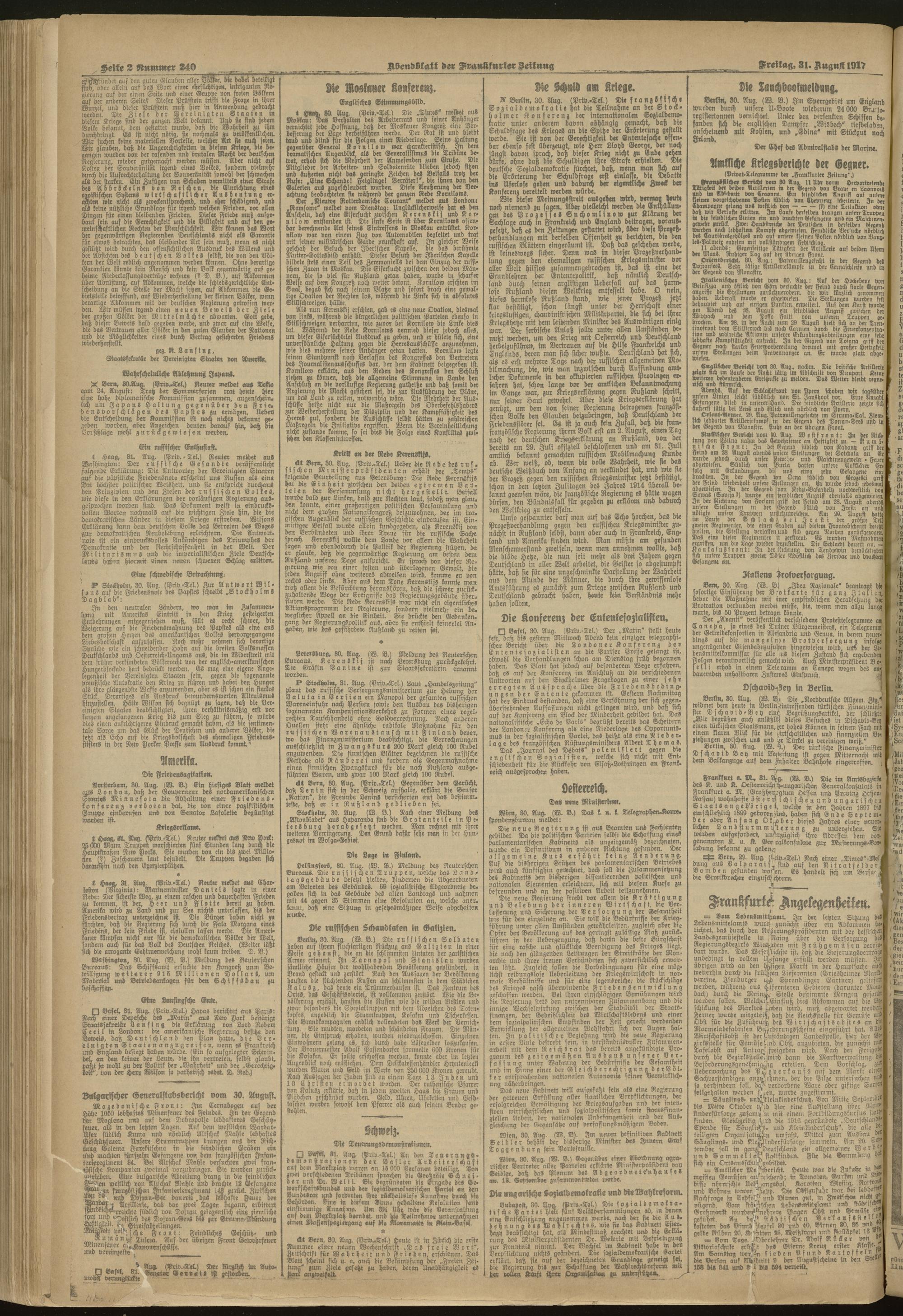 31.08.1917 = Nr. 240. Abendblatt