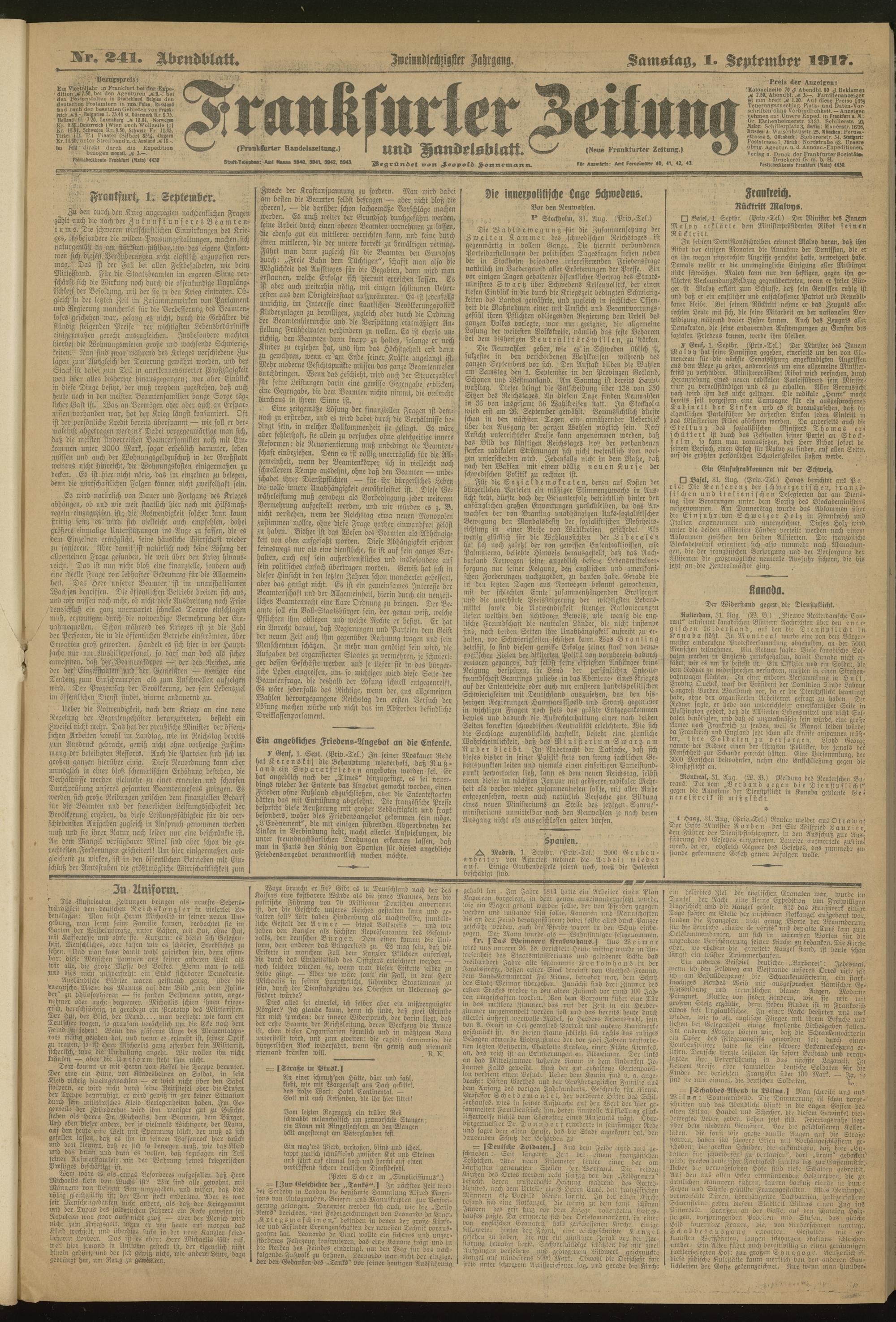 01.09.1917 = Nr. 241. Abendblatt
