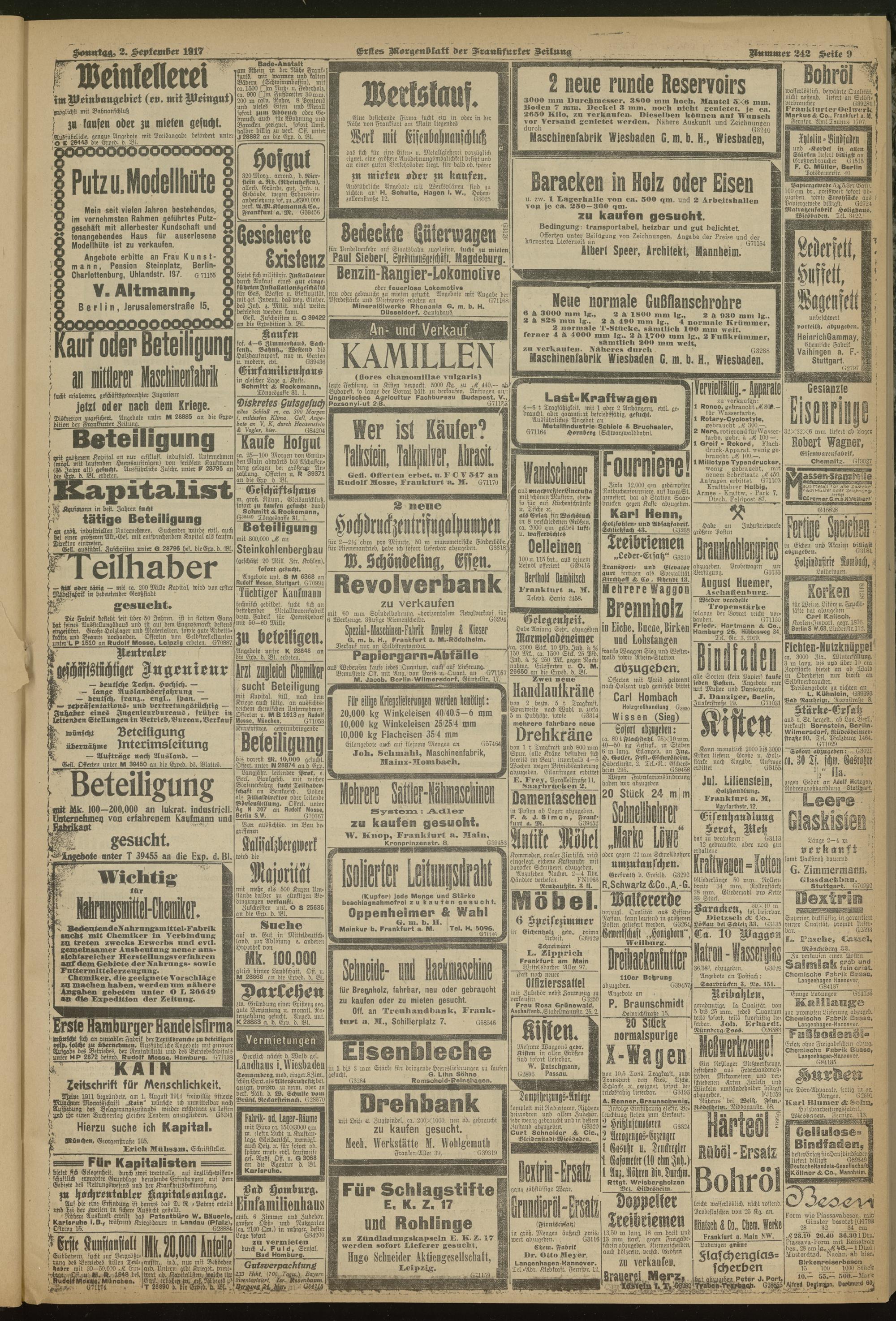 02.09.1917 = Nr. 242. Erstes Morgenblatt