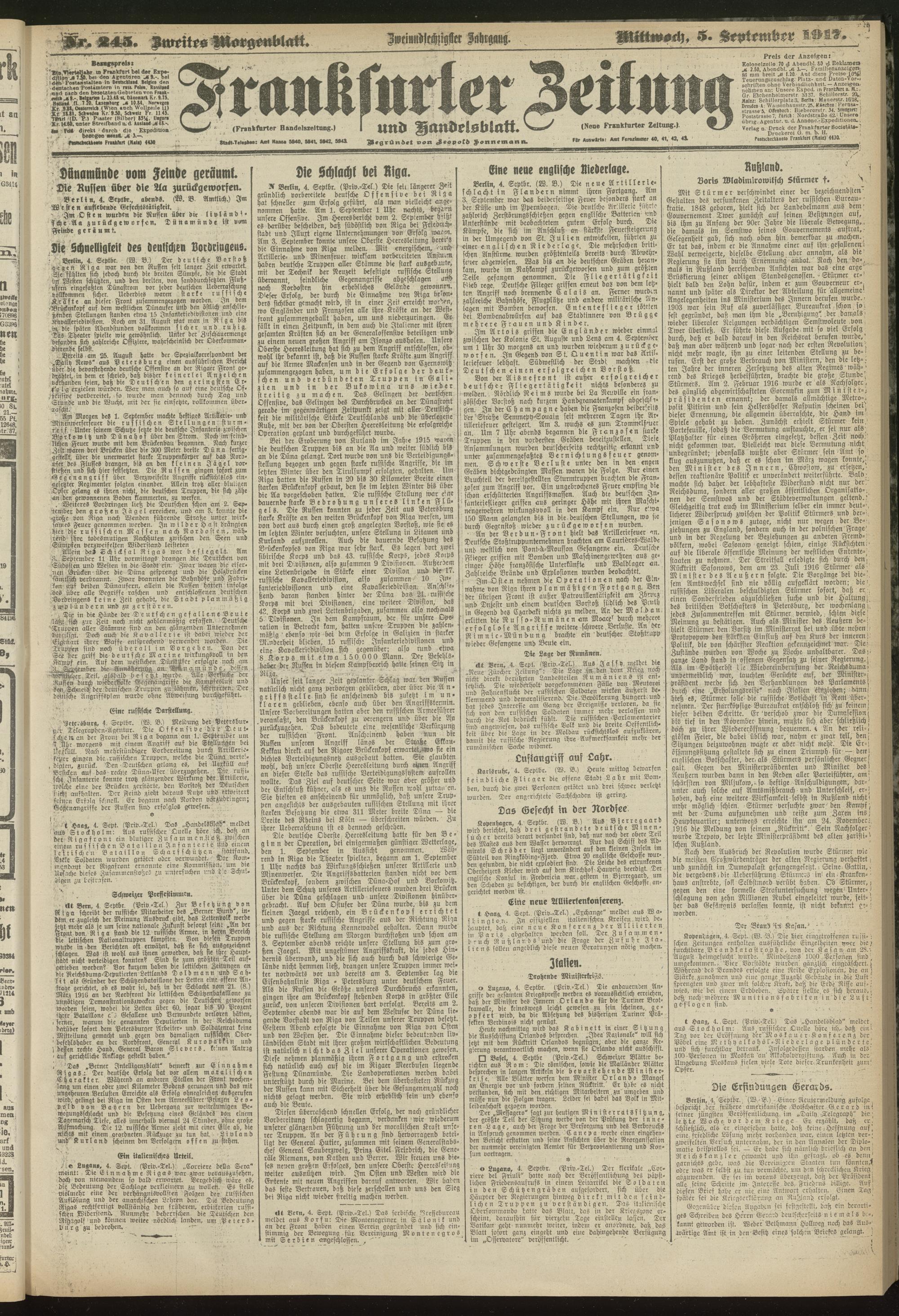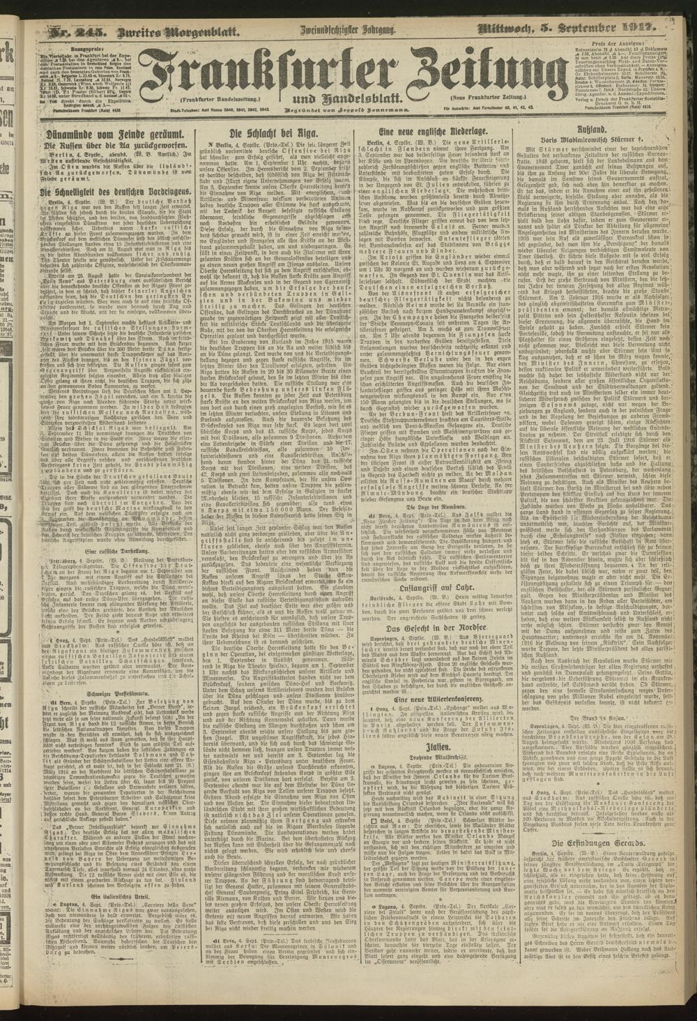 05.09.1917 = Nr. 245. Zweites Morgenblatt