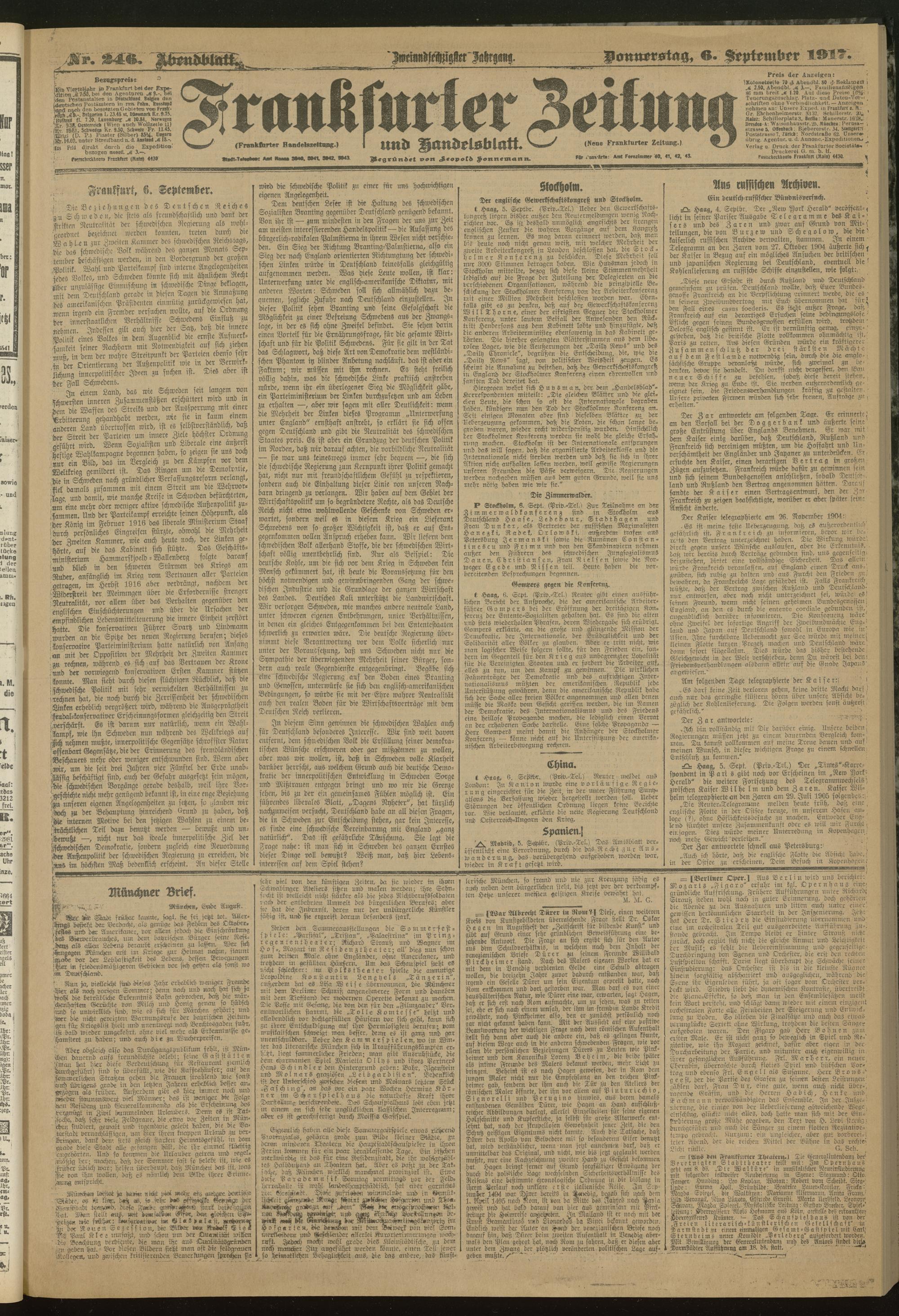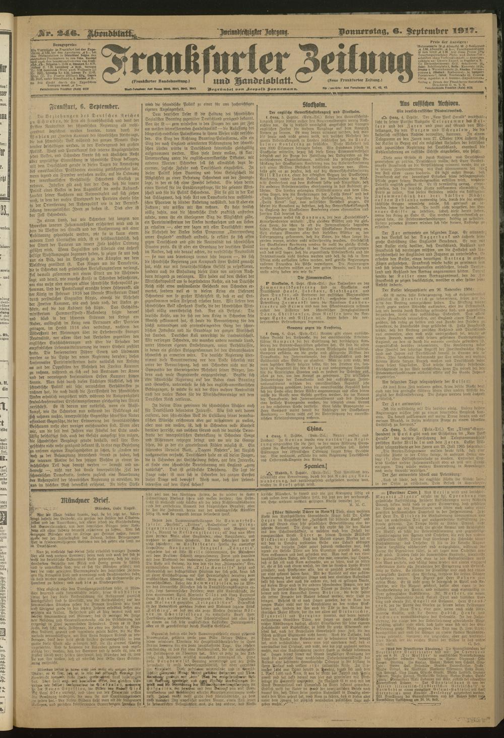 06.09.1917 = Nr. 246. Abendblatt