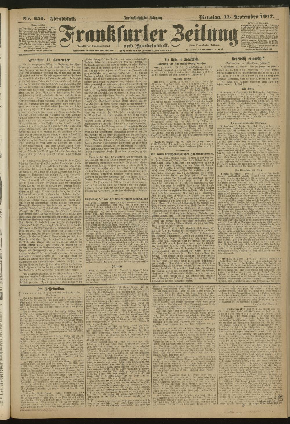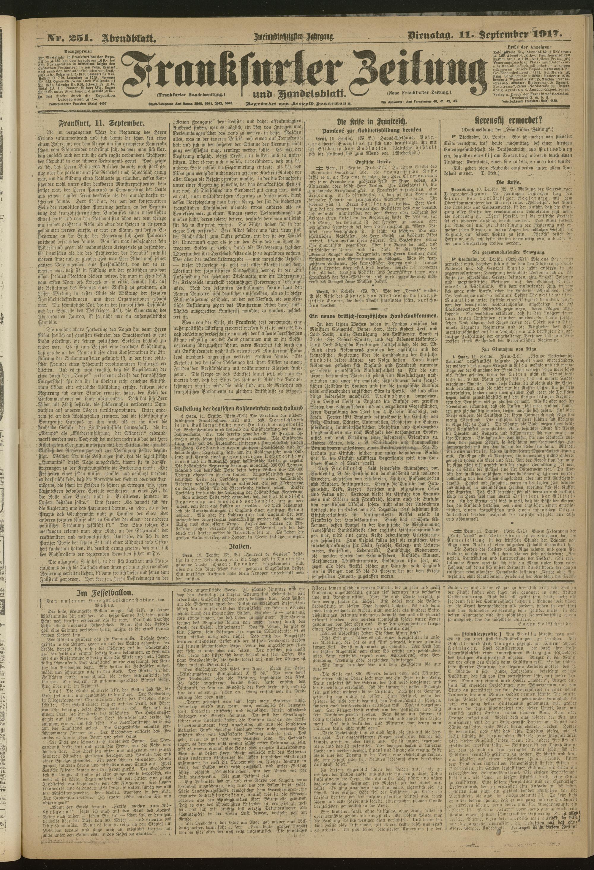 11.09.1917 = Nr. 251. Abendblatt