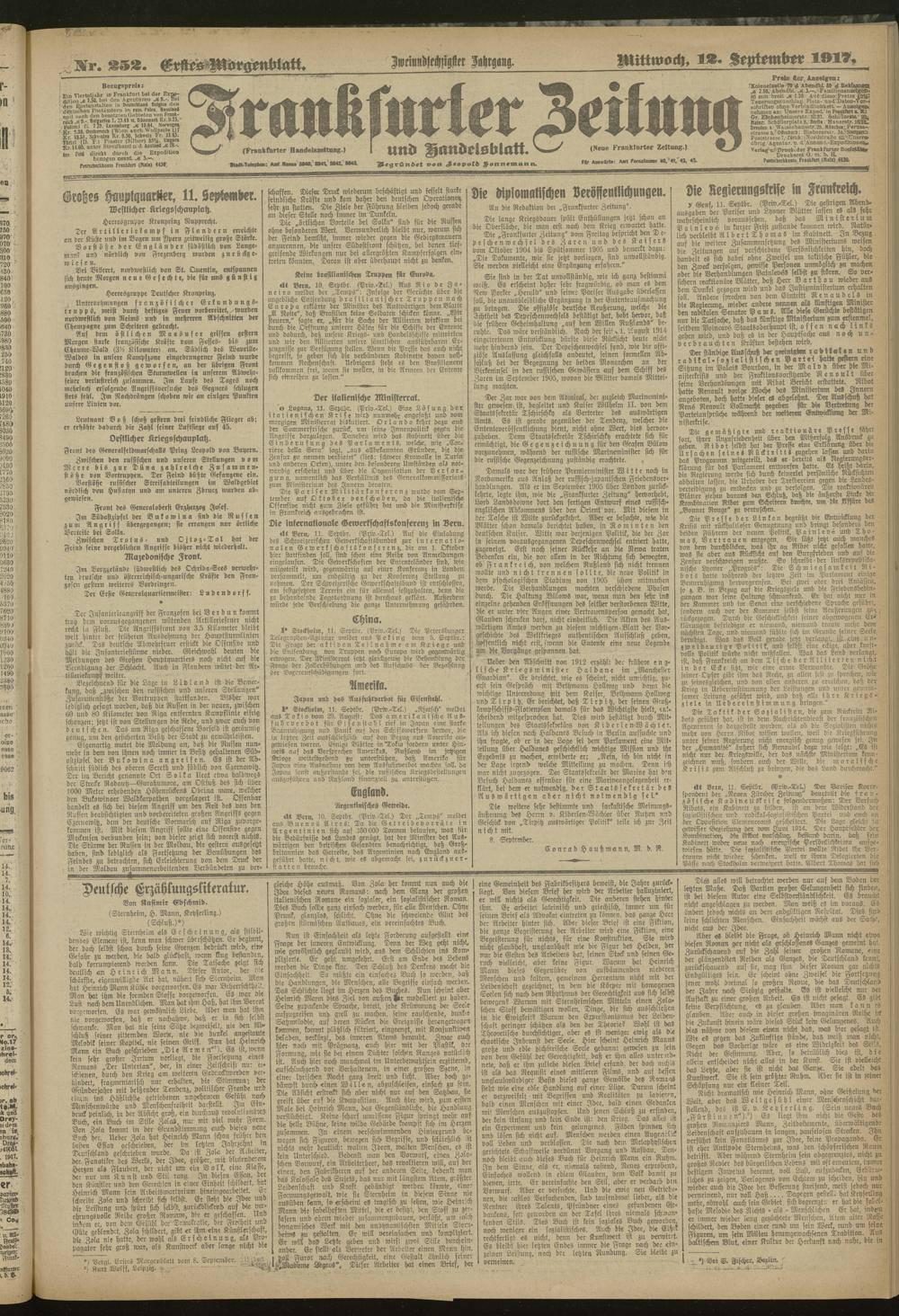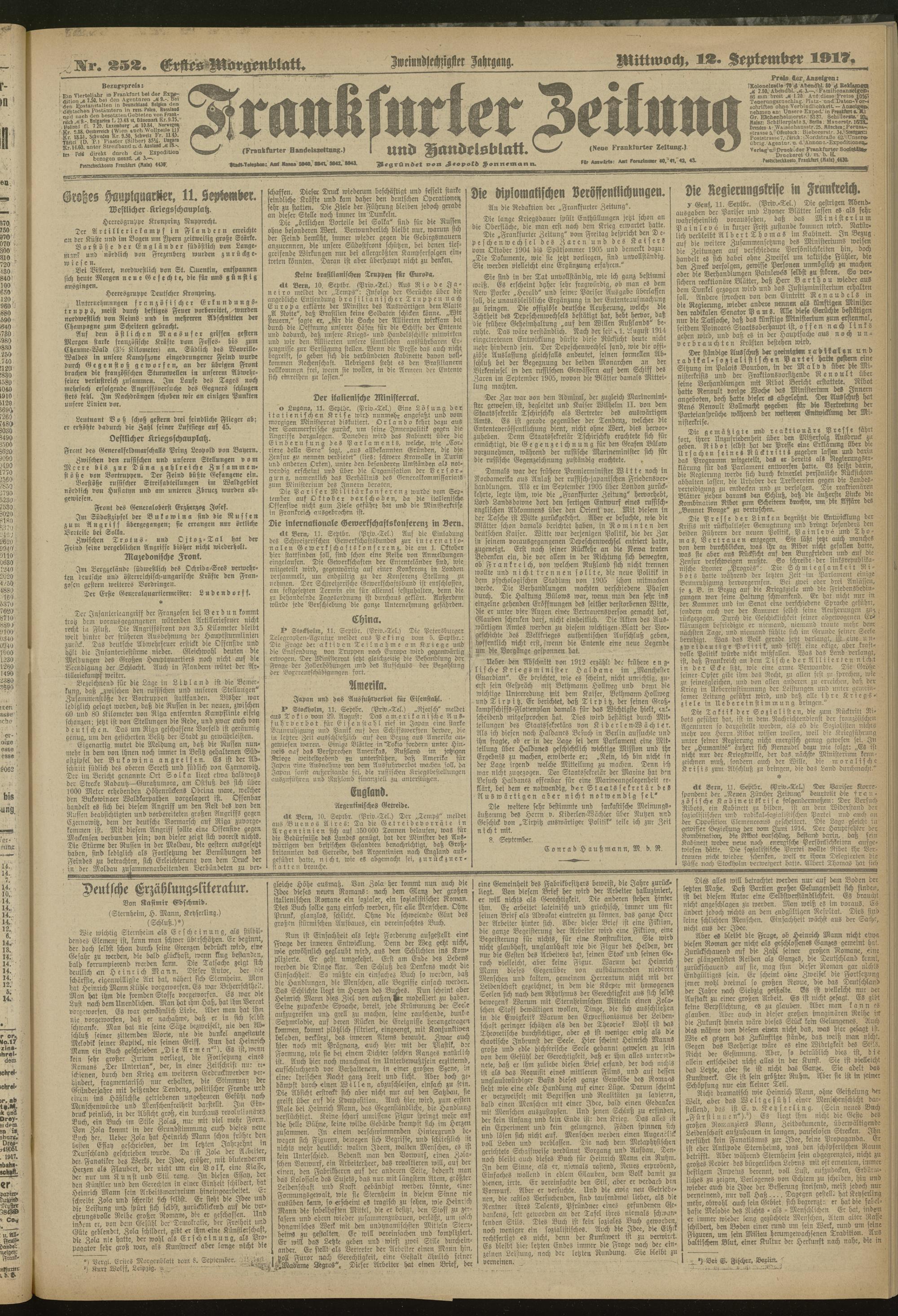 12.09.1917 = Nr. 252. Erstes Morgenblatt