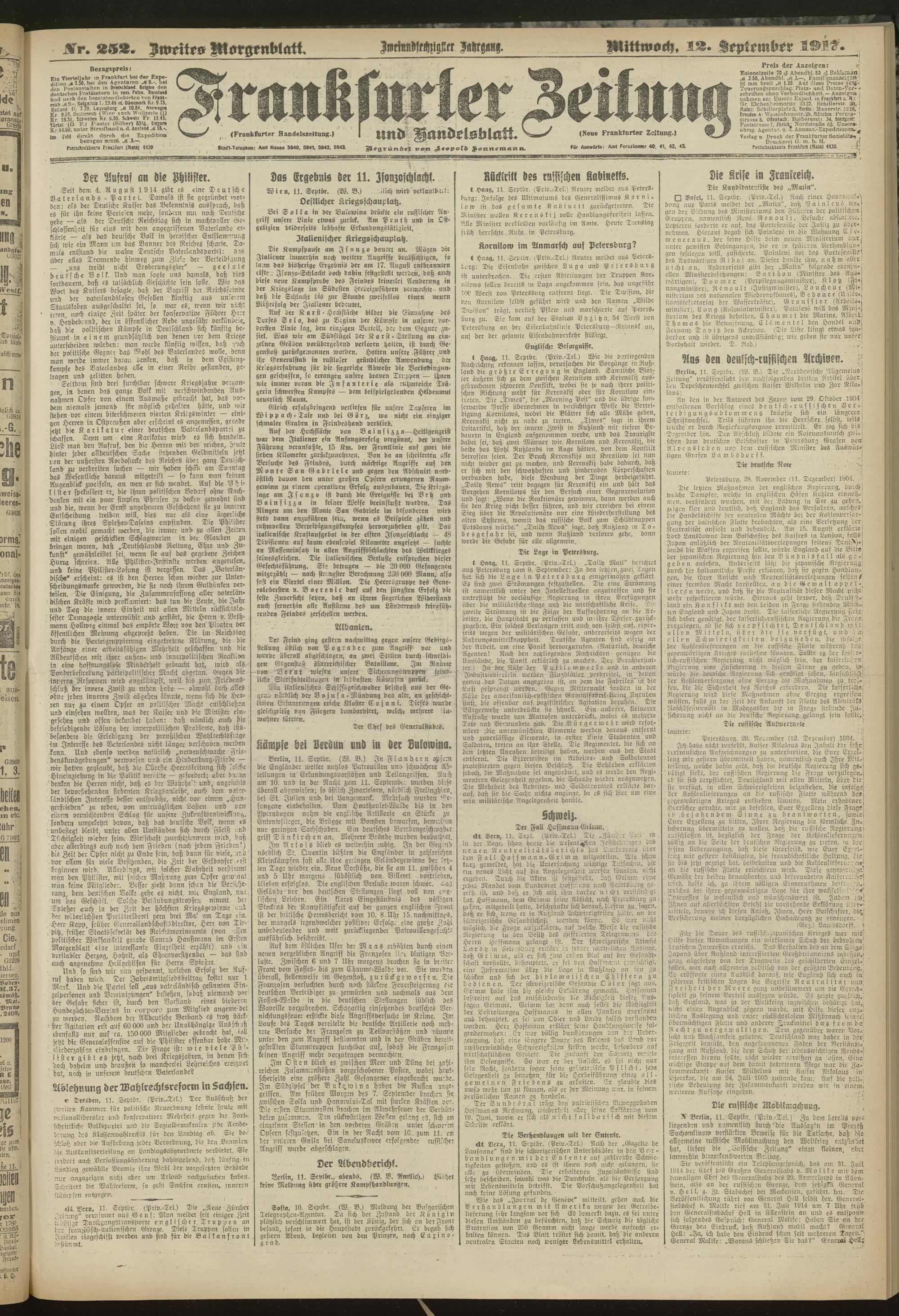 12.09.1917 = Nr. 252. Zweites Morgenblatt