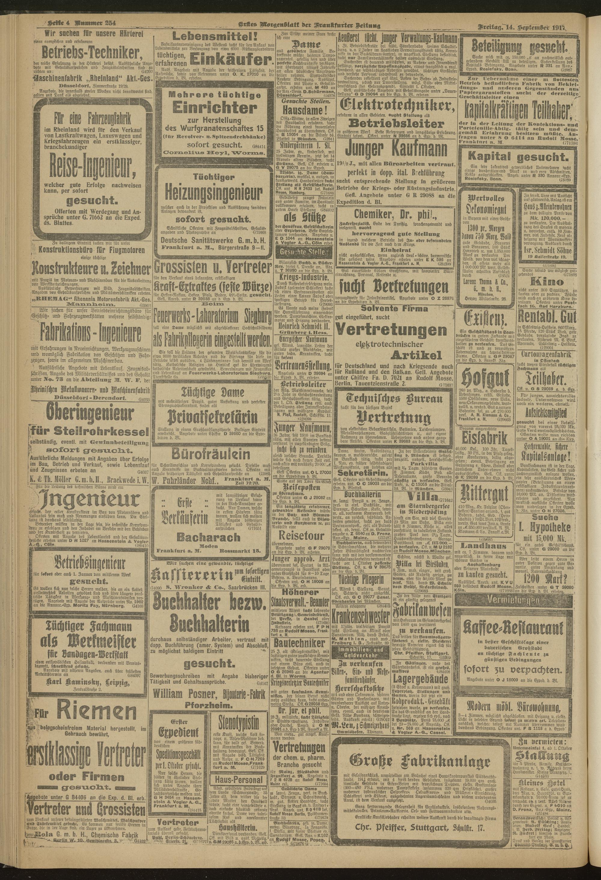 14.09.1917 = Nr. 254. Erstes Morgenblatt