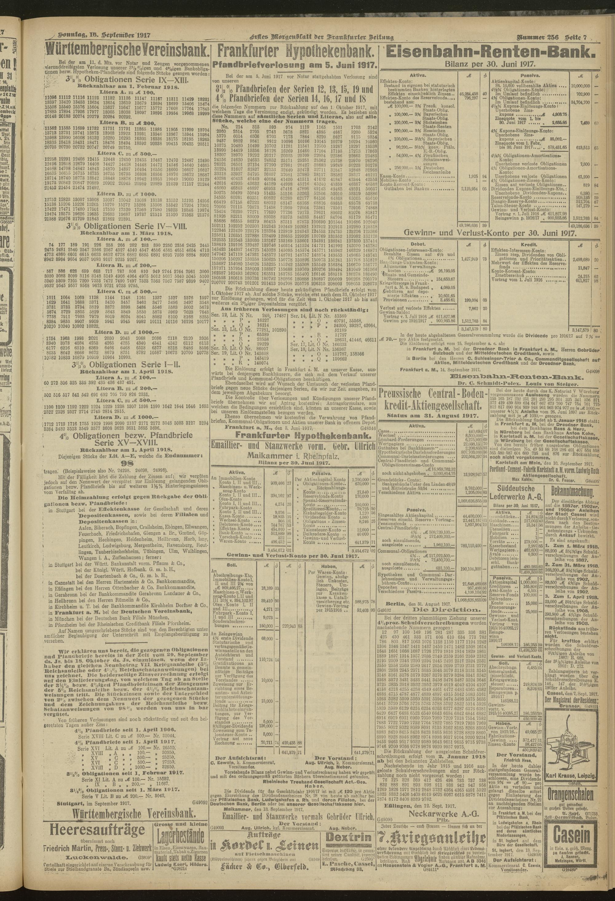 16.09.1917 = Nr. 256. Erstes Morgenblatt