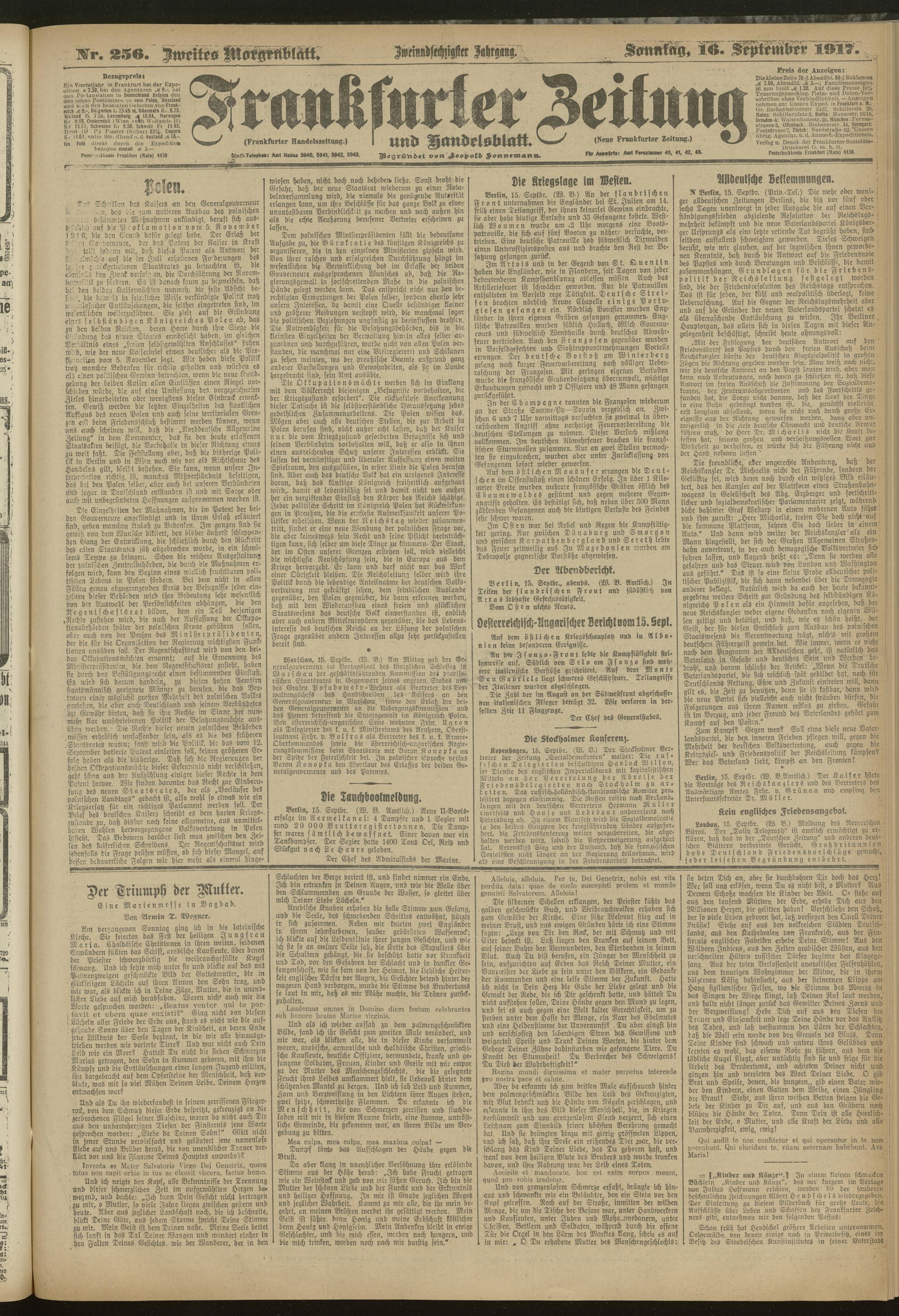 16.09.1917 = Nr. 256. Zweites Morgenblatt