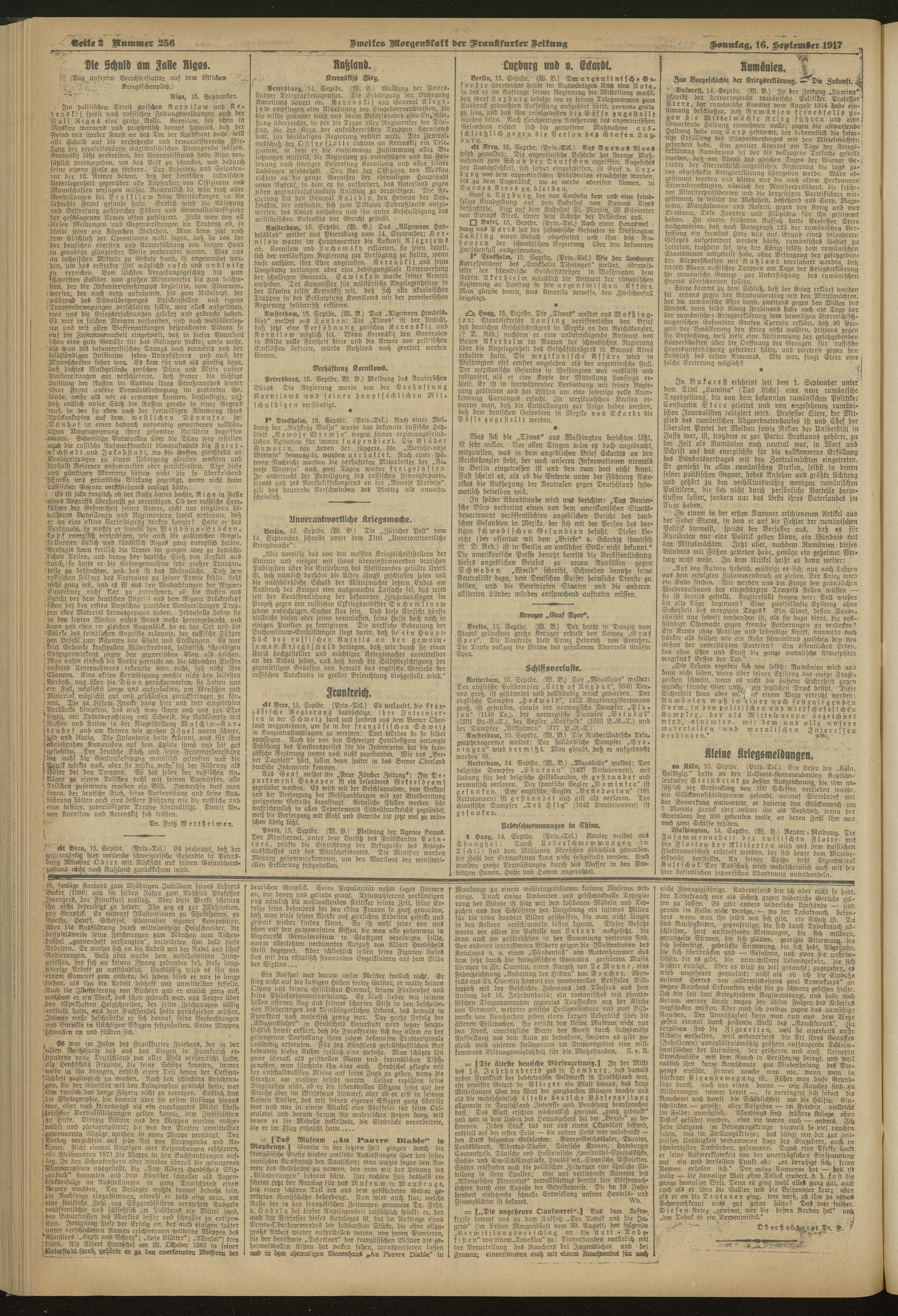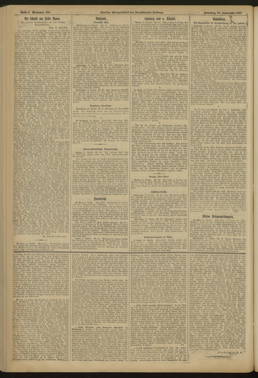 16.09.1917 = Nr. 256. Zweites Morgenblatt