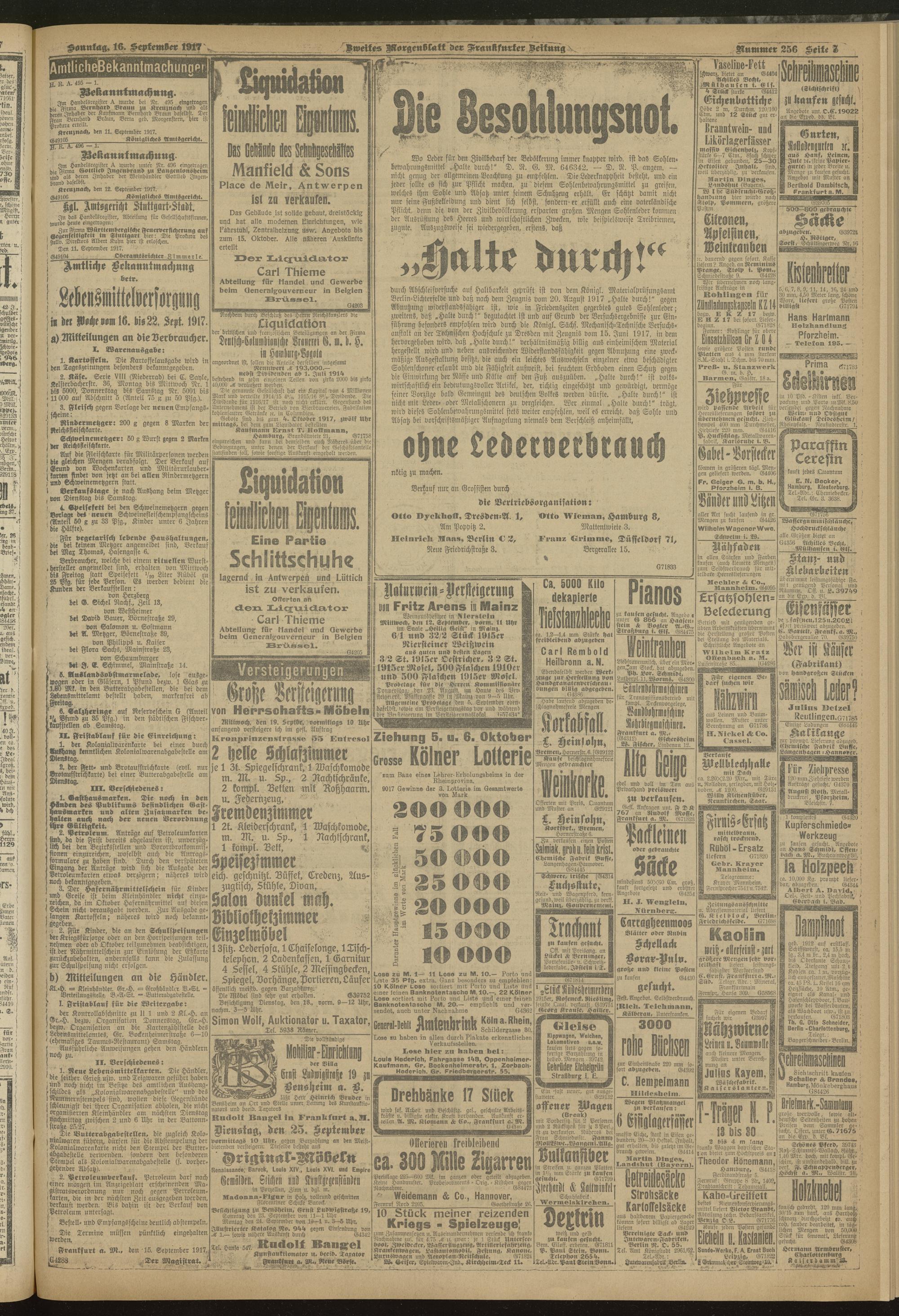 16.09.1917 = Nr. 256. Zweites Morgenblatt