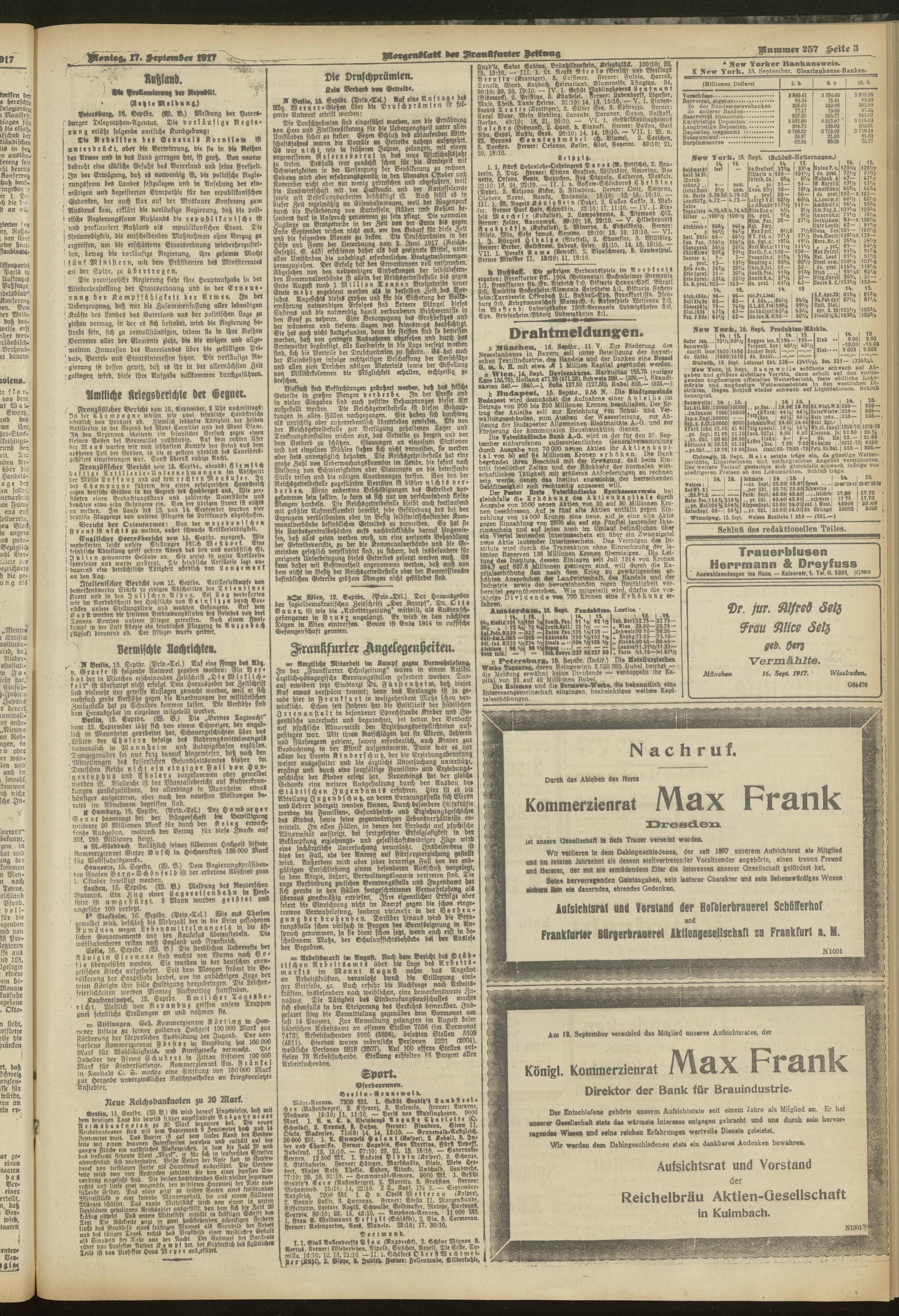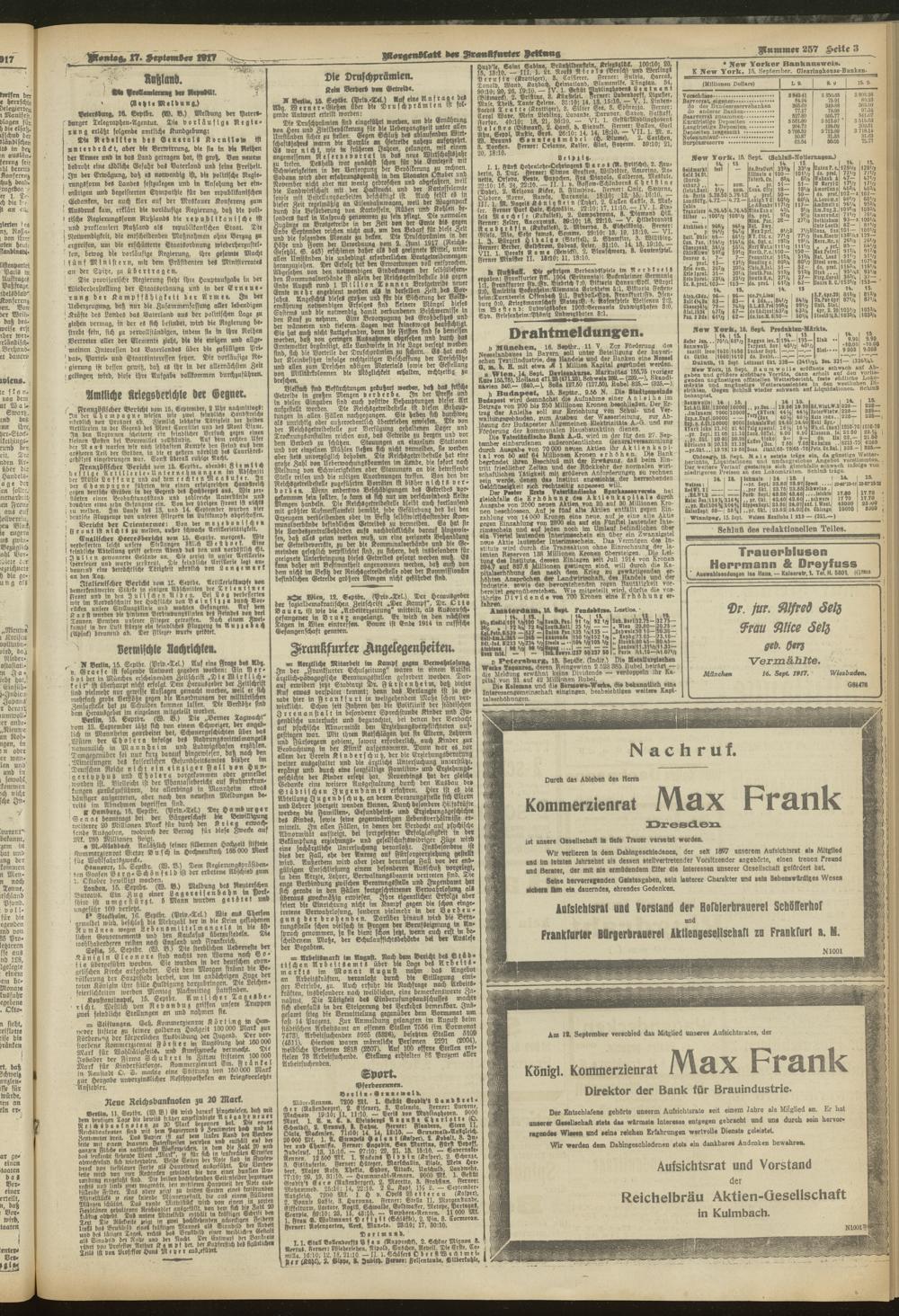 17.09.1917 = Nr. 257. Morgenblatt