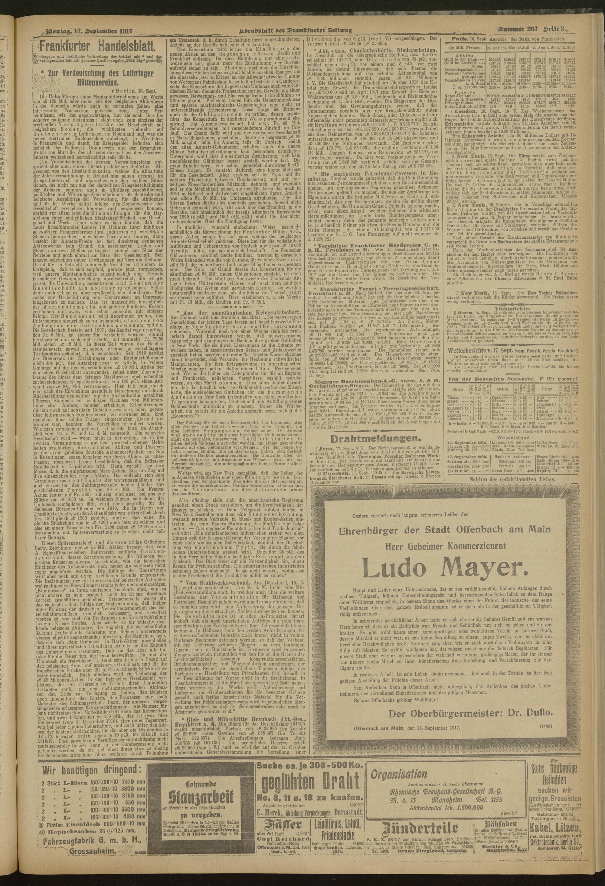 17.09.1917 = Nr. 257. Abendblatt