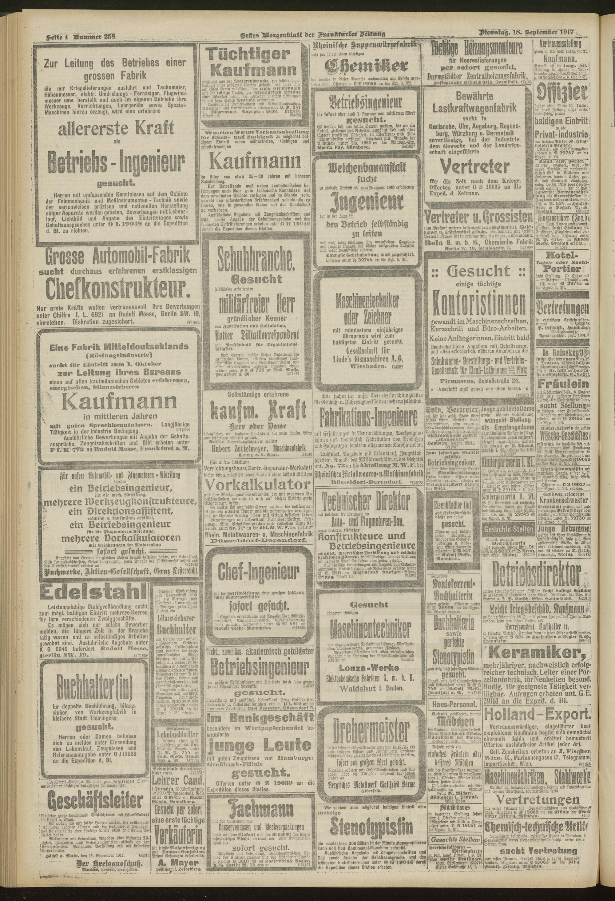 18.09.1917 = Nr. 258. Erstes Morgenblatt