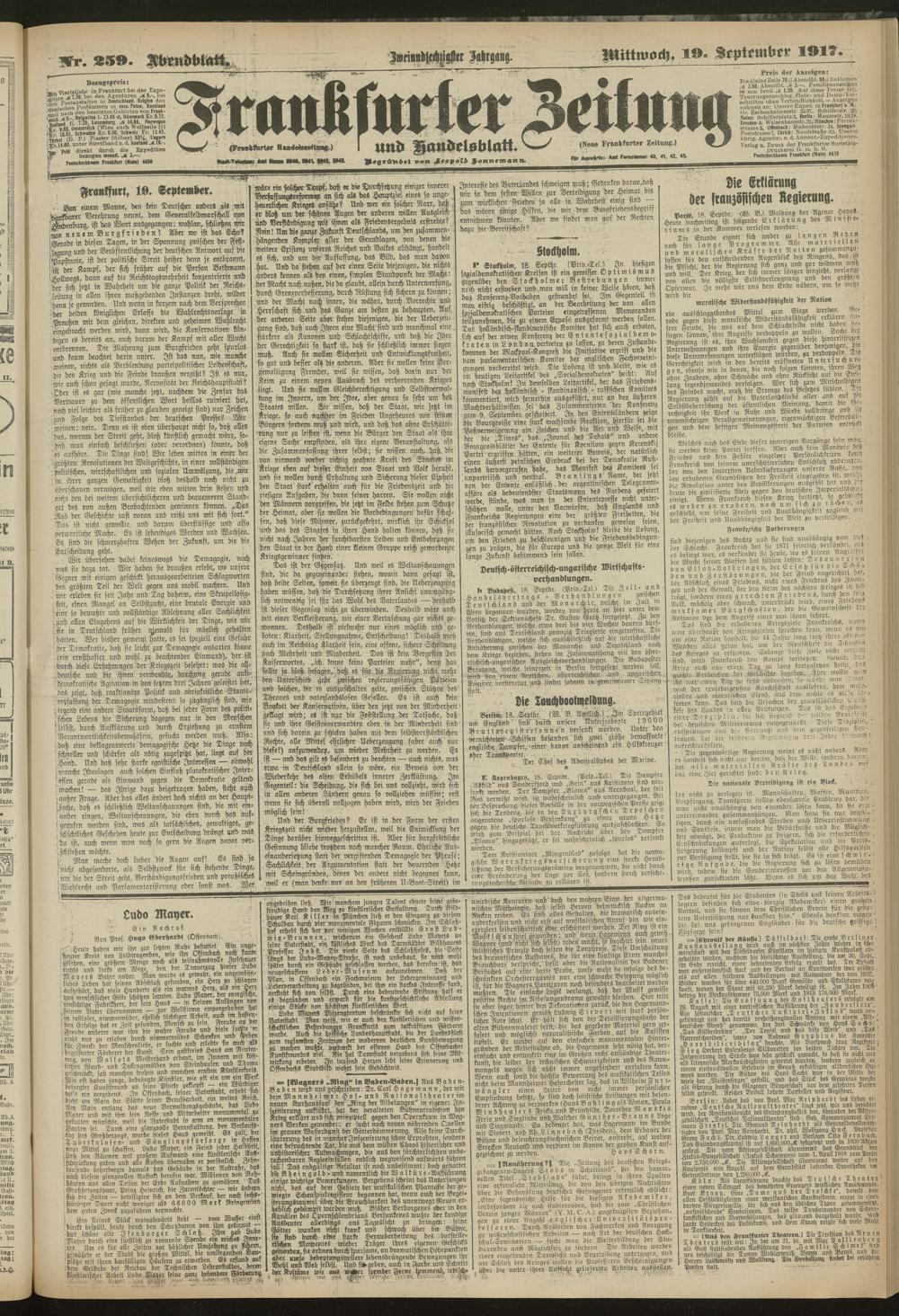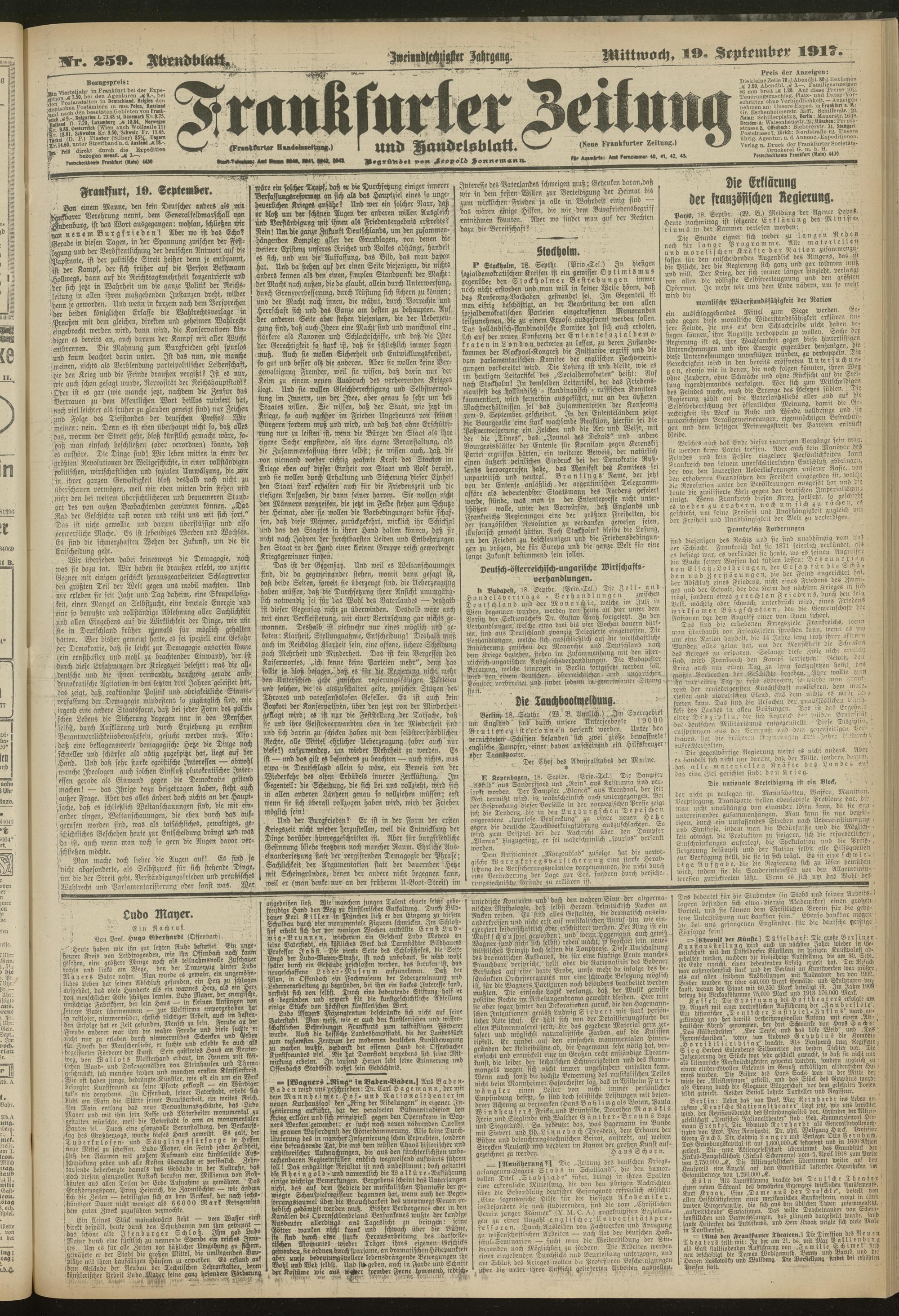 19.09.1917 = Nr. 259. Abendblatt