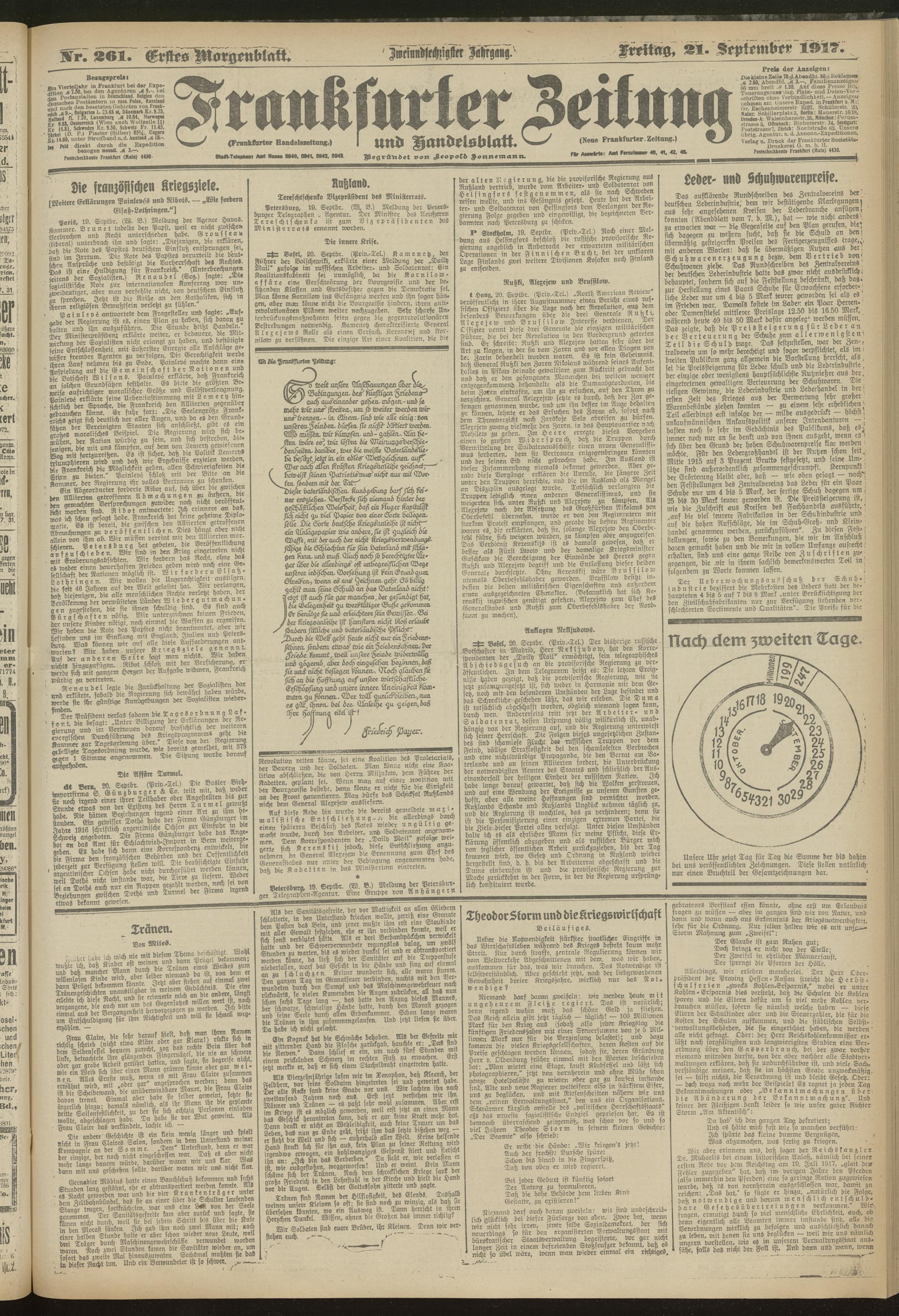 21.09.1917 = Nr. 261. Erstes Morgenblatt