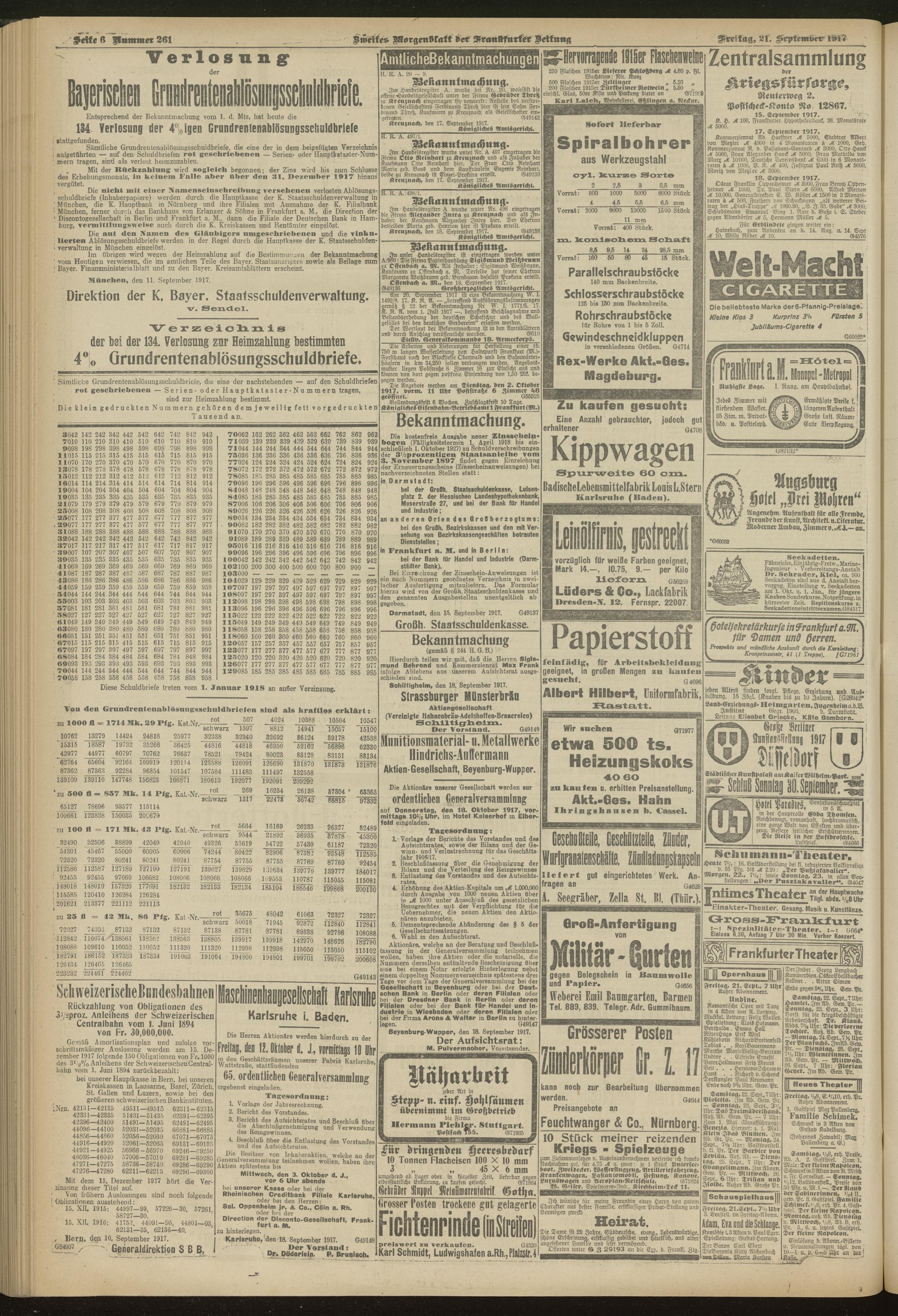21.09.1917 = Nr. 261. Zweites Morgenblatt