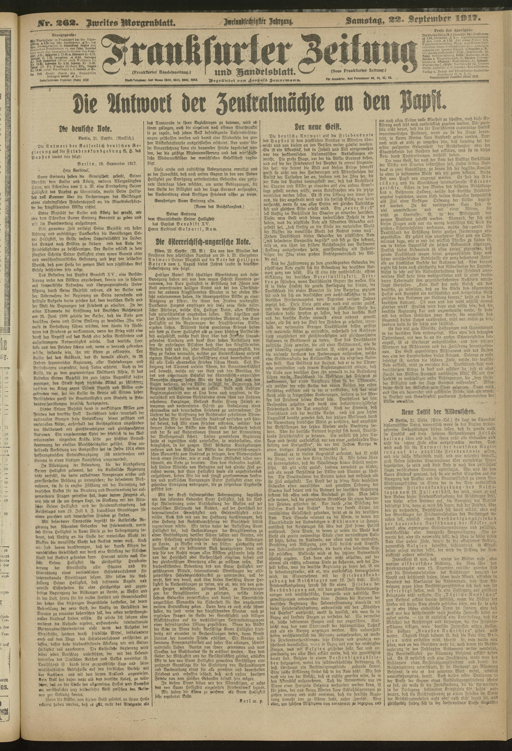 22.09.1917 = Nr. 262. Zweites Morgenblatt