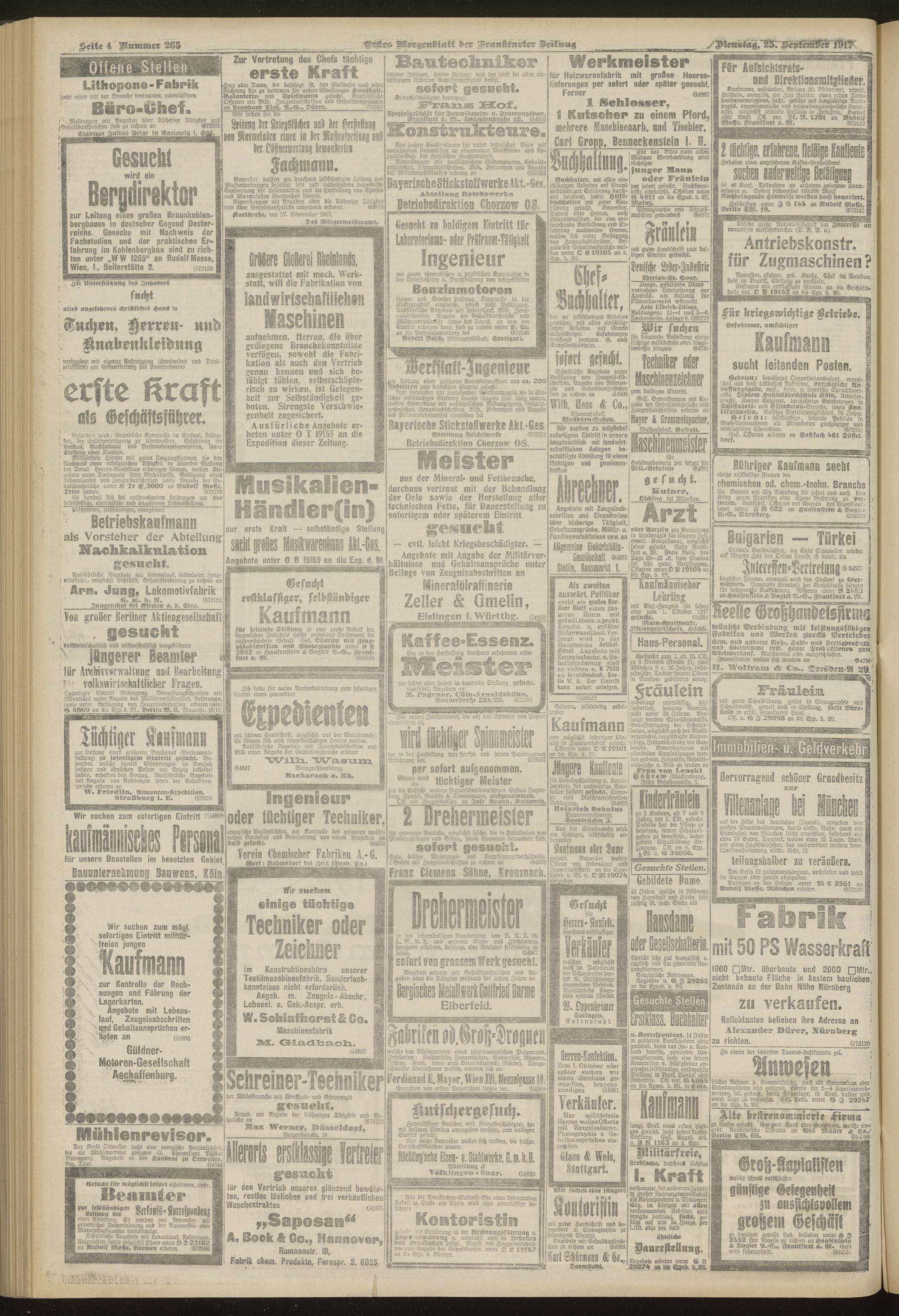 25.09.1917 = Nr. 265. Erstes Morgenblatt