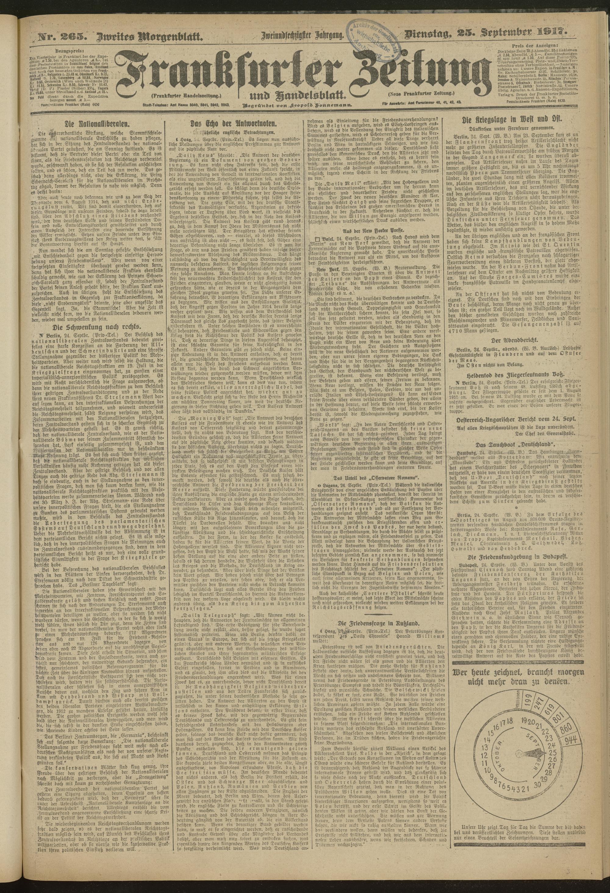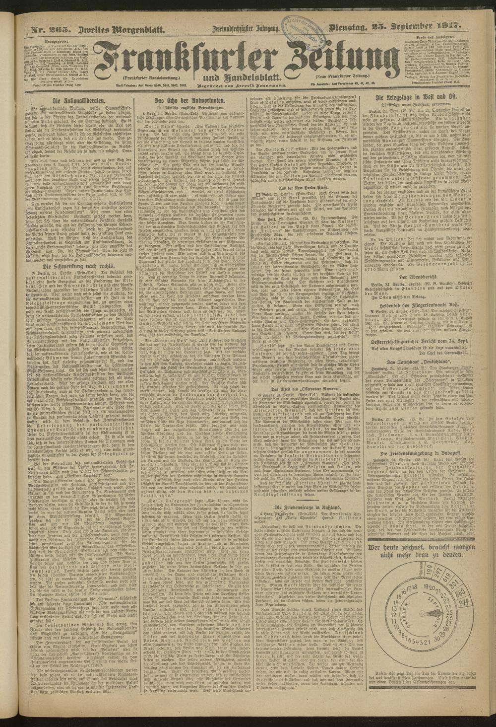 25.09.1917 = Nr. 265. Zweites Morgenblatt