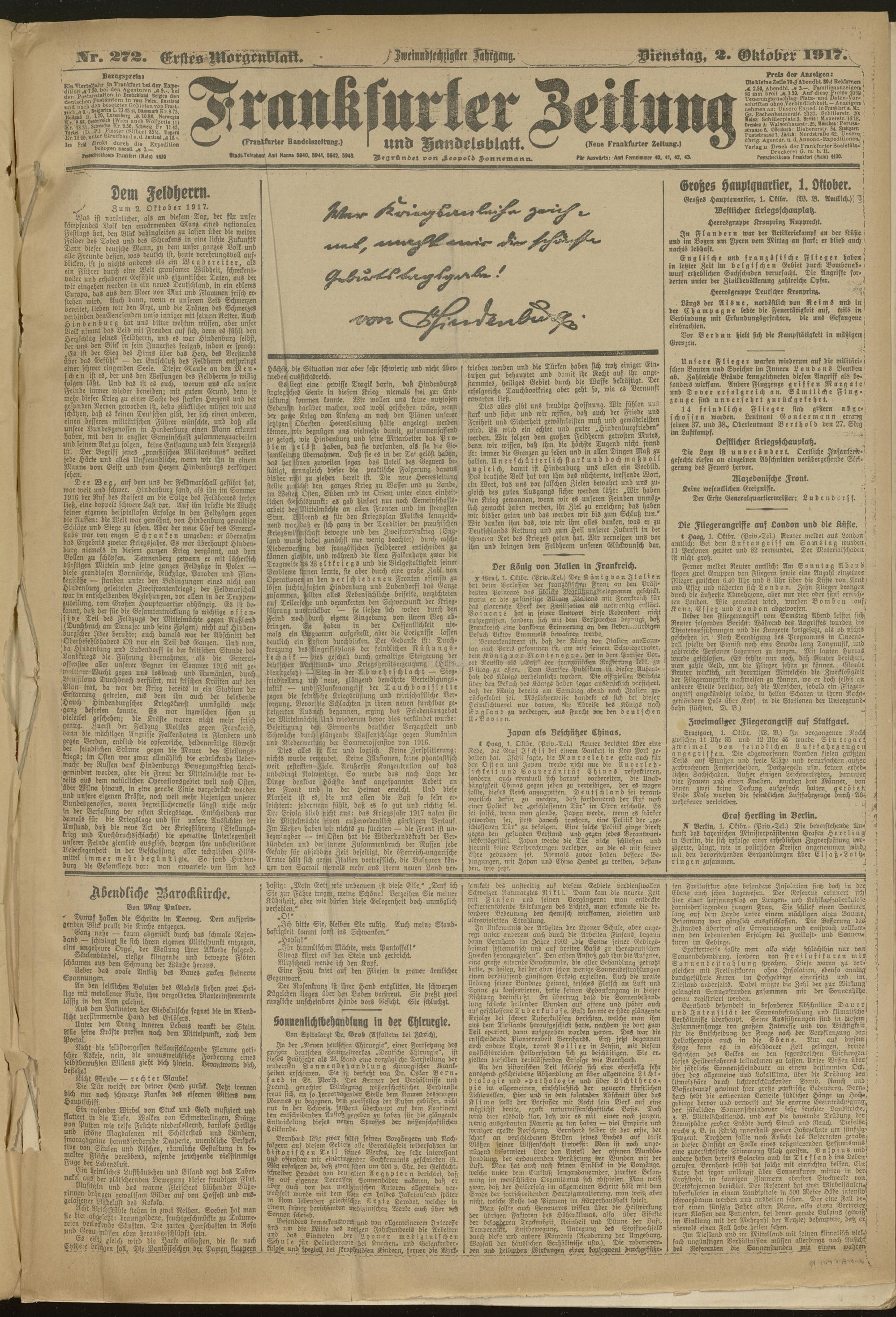02.10.1917 = Nr. 272. Erstes Morgenblatt