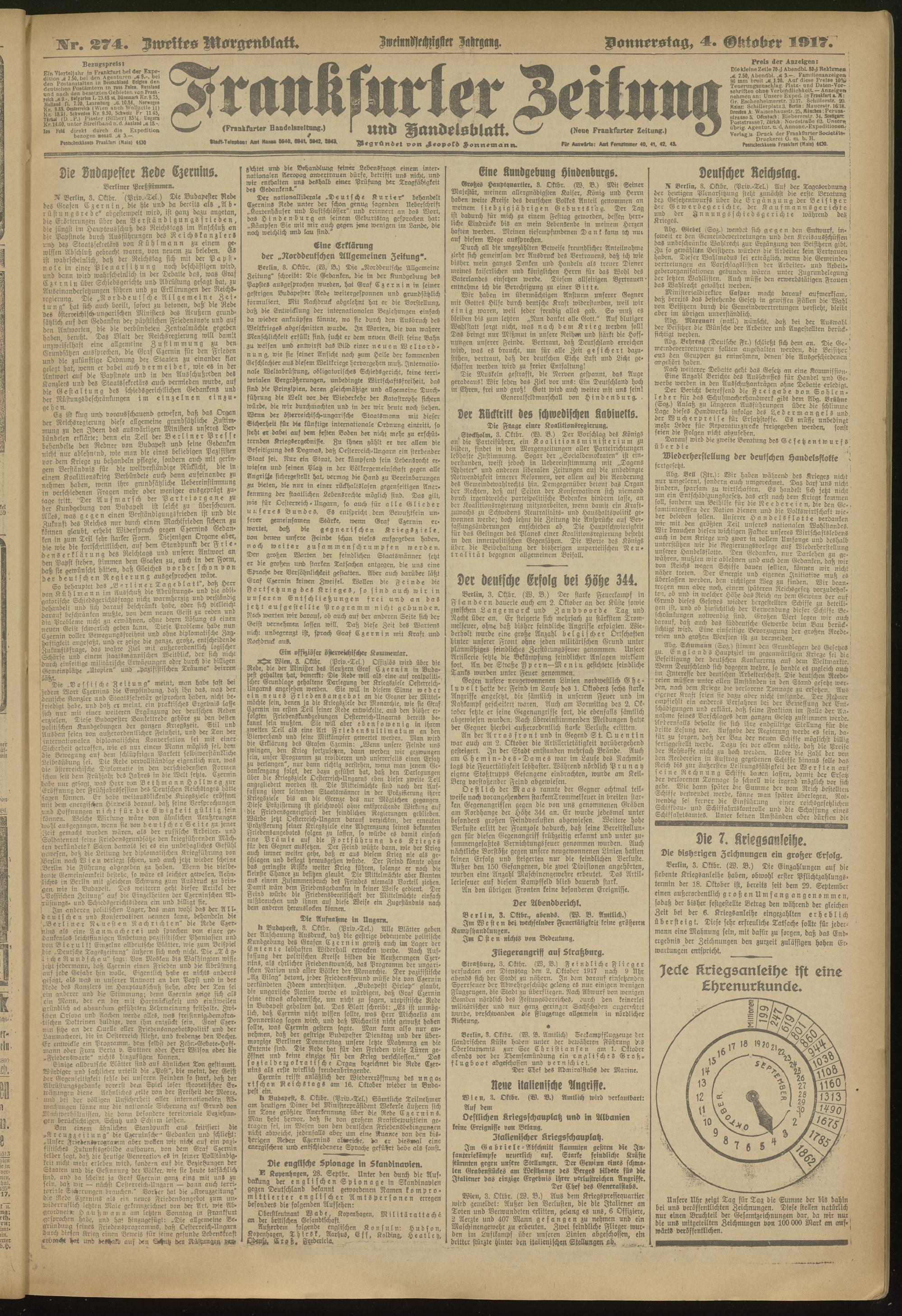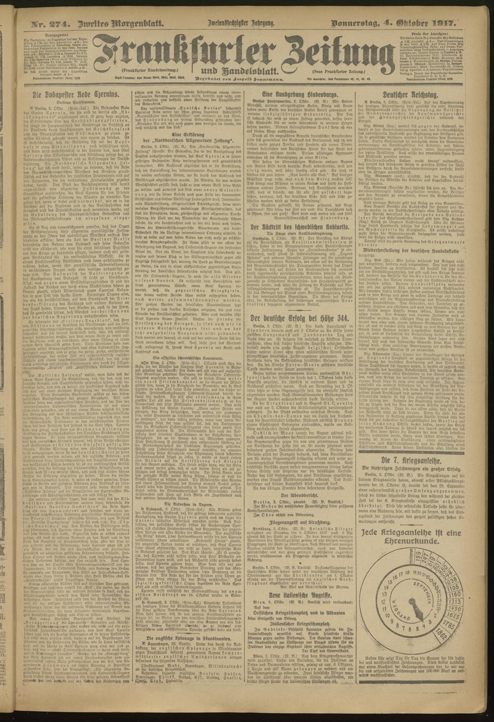 04.10.1917 = Nr. 274. Zweites Morgenblatt