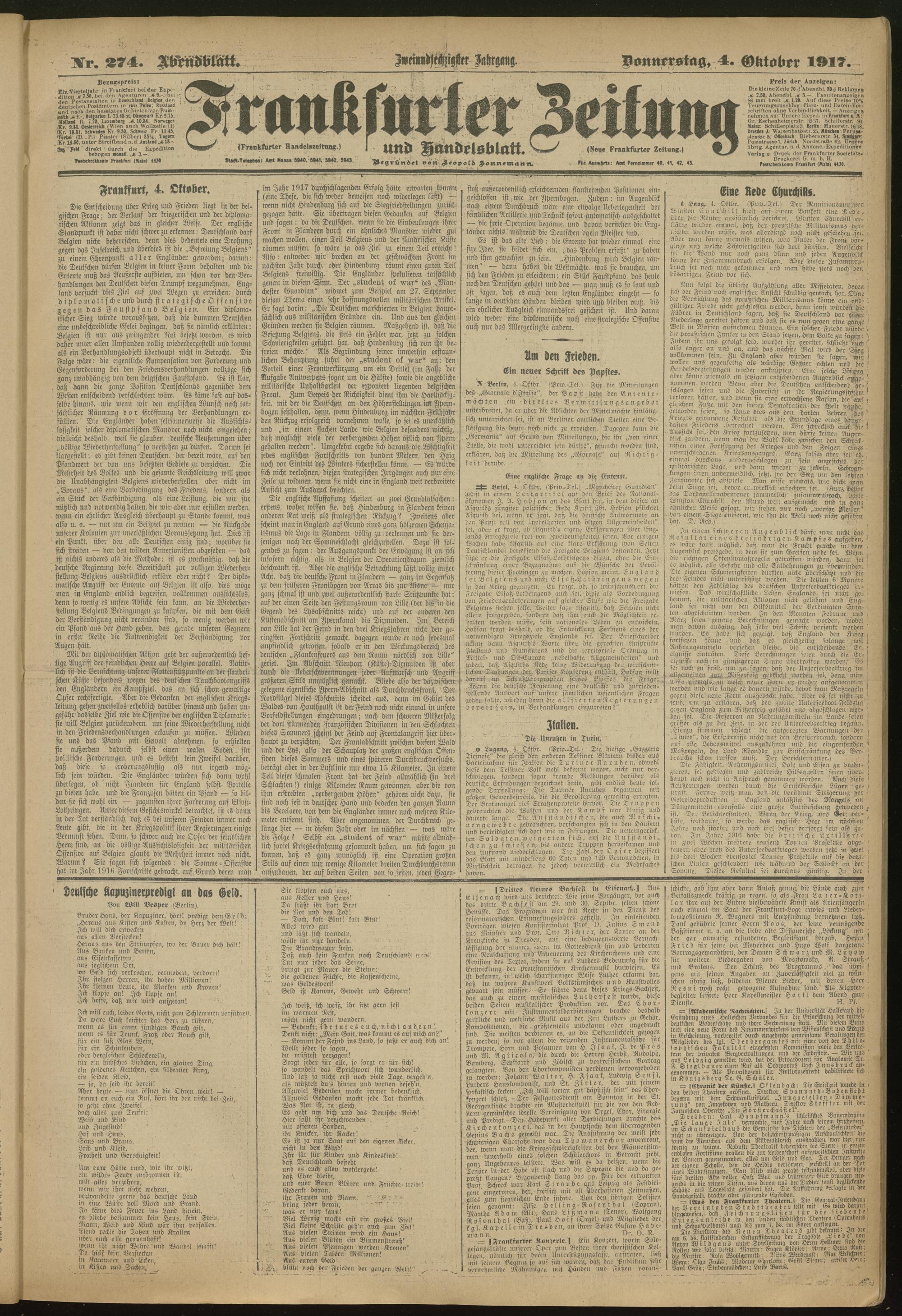 04.10.1917 = Nr. 274. Abendblatt