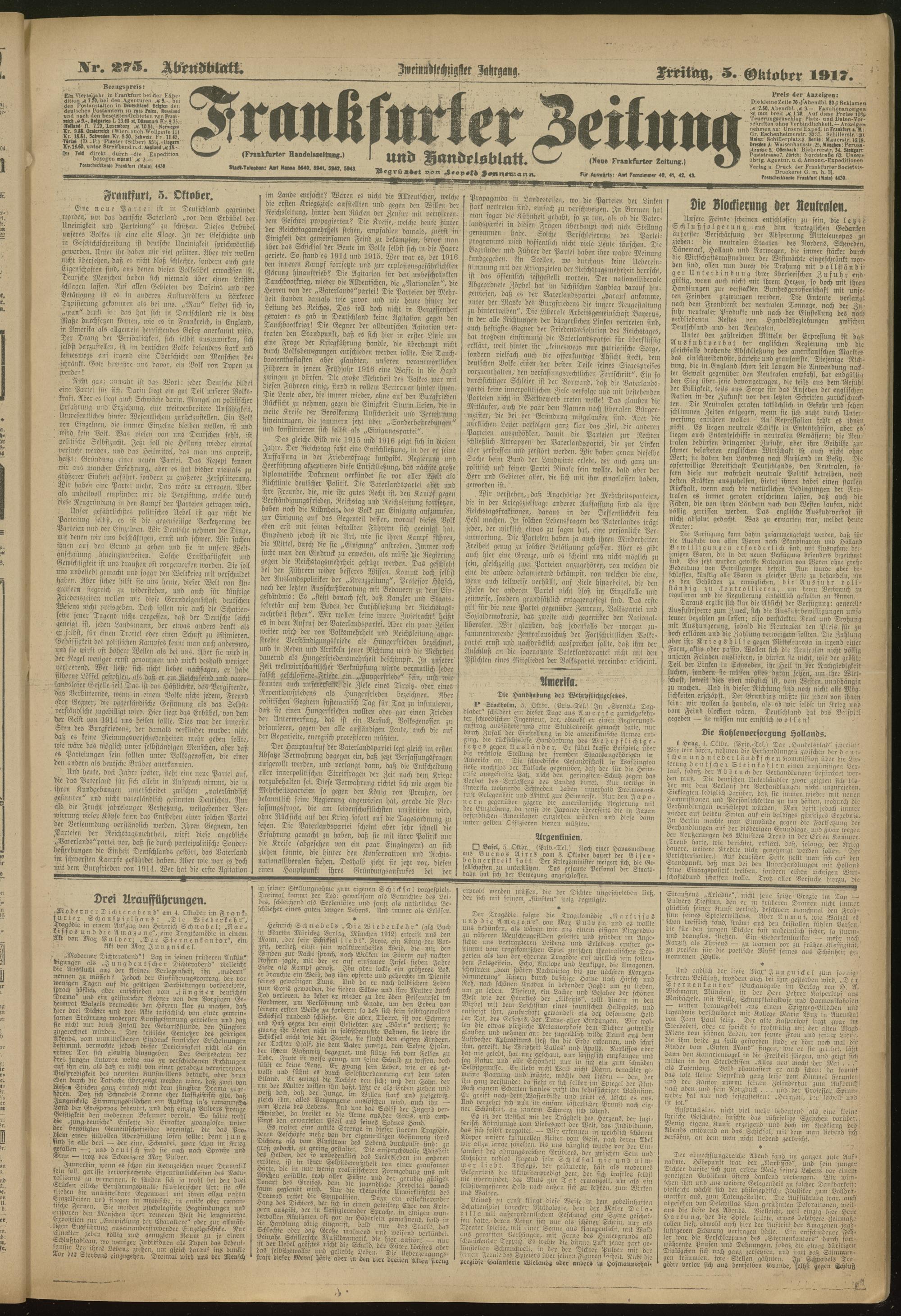 05.10.1917 = Nr. 275. Abendblatt
