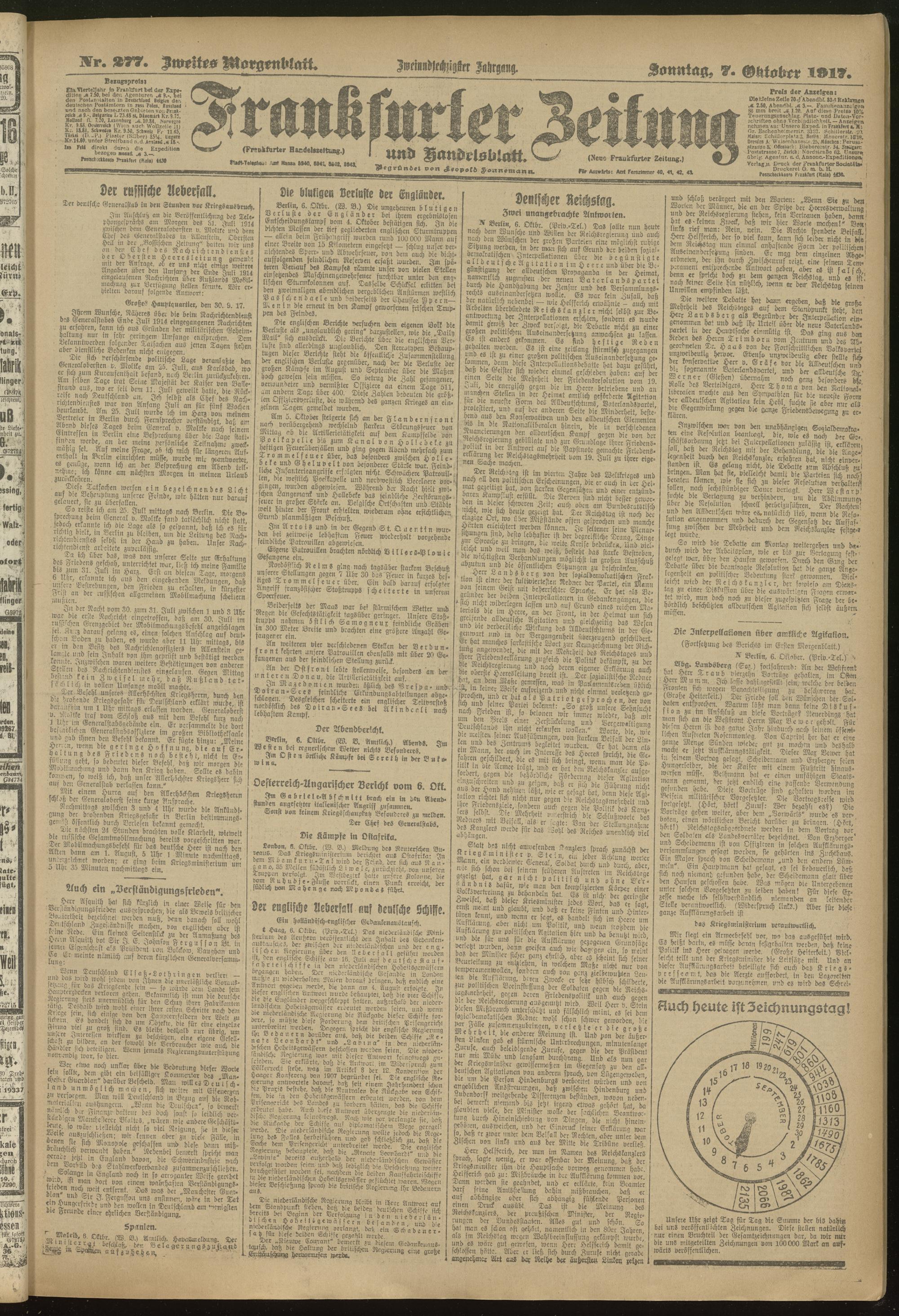 07.10.1917 = Nr. 277. Zweites Morgenblatt