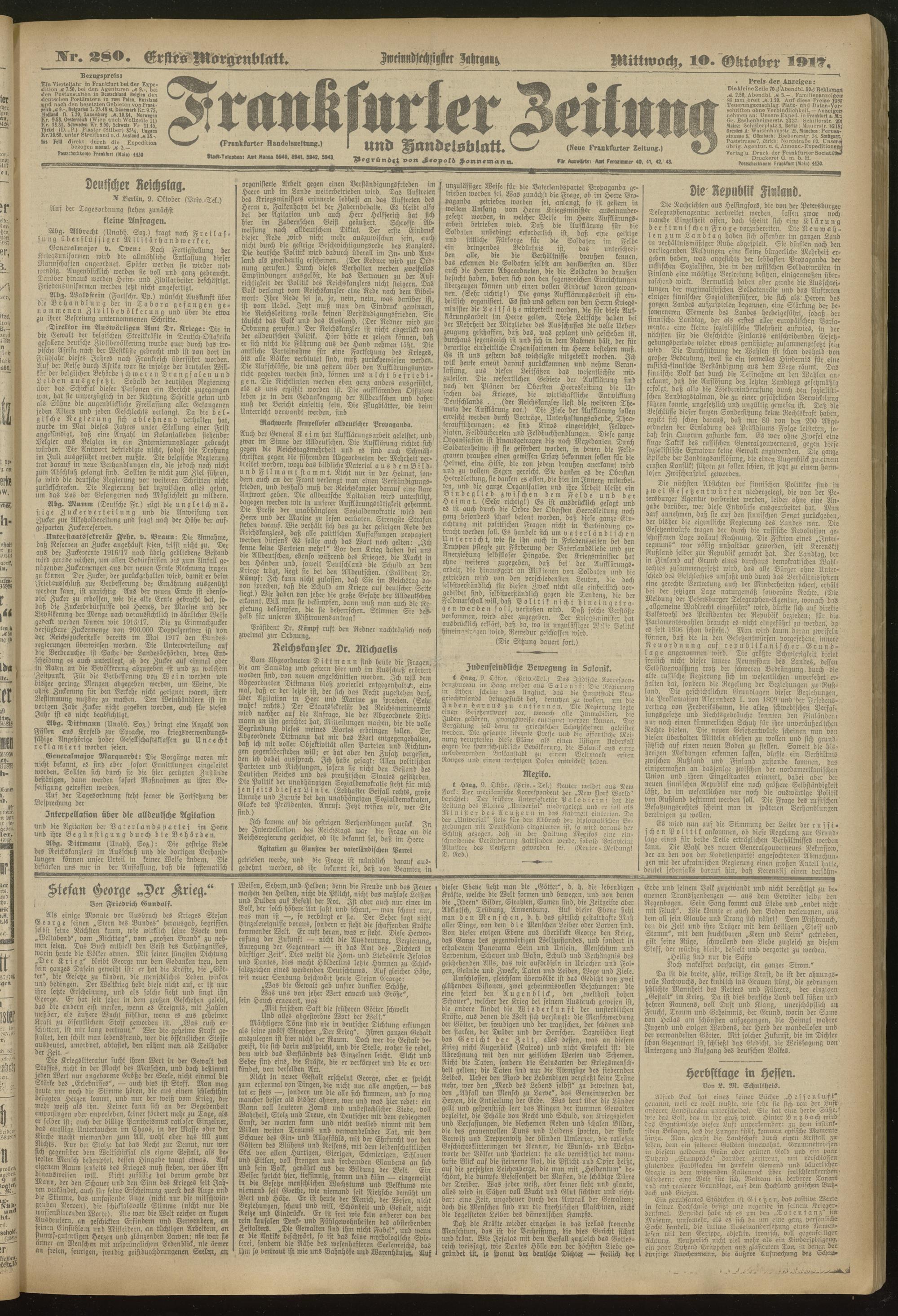 10.10.1917 = Nr. 280. Erstes Morgenblatt