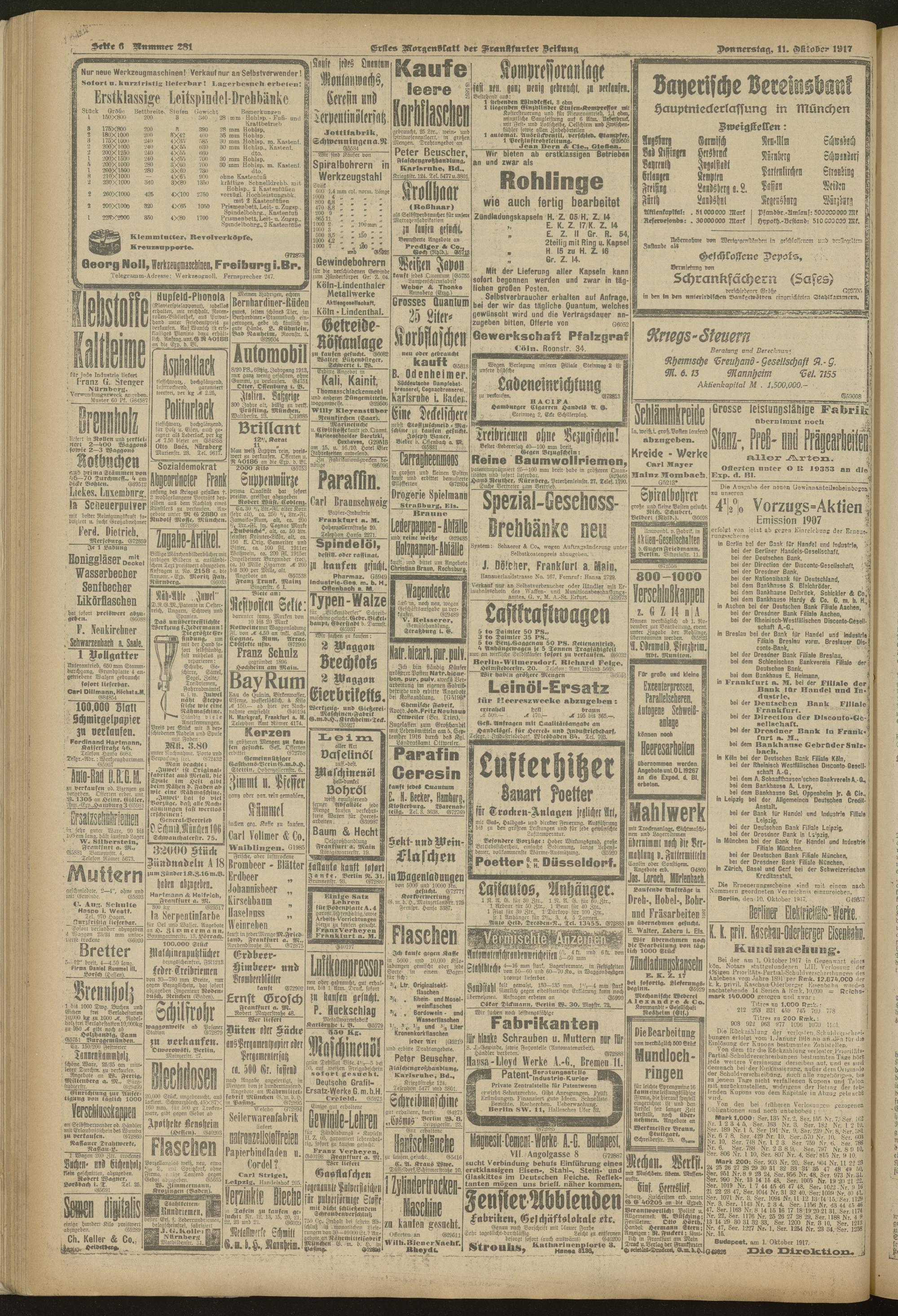 11.10.1917 = Nr. 281. Erstes Morgenblatt