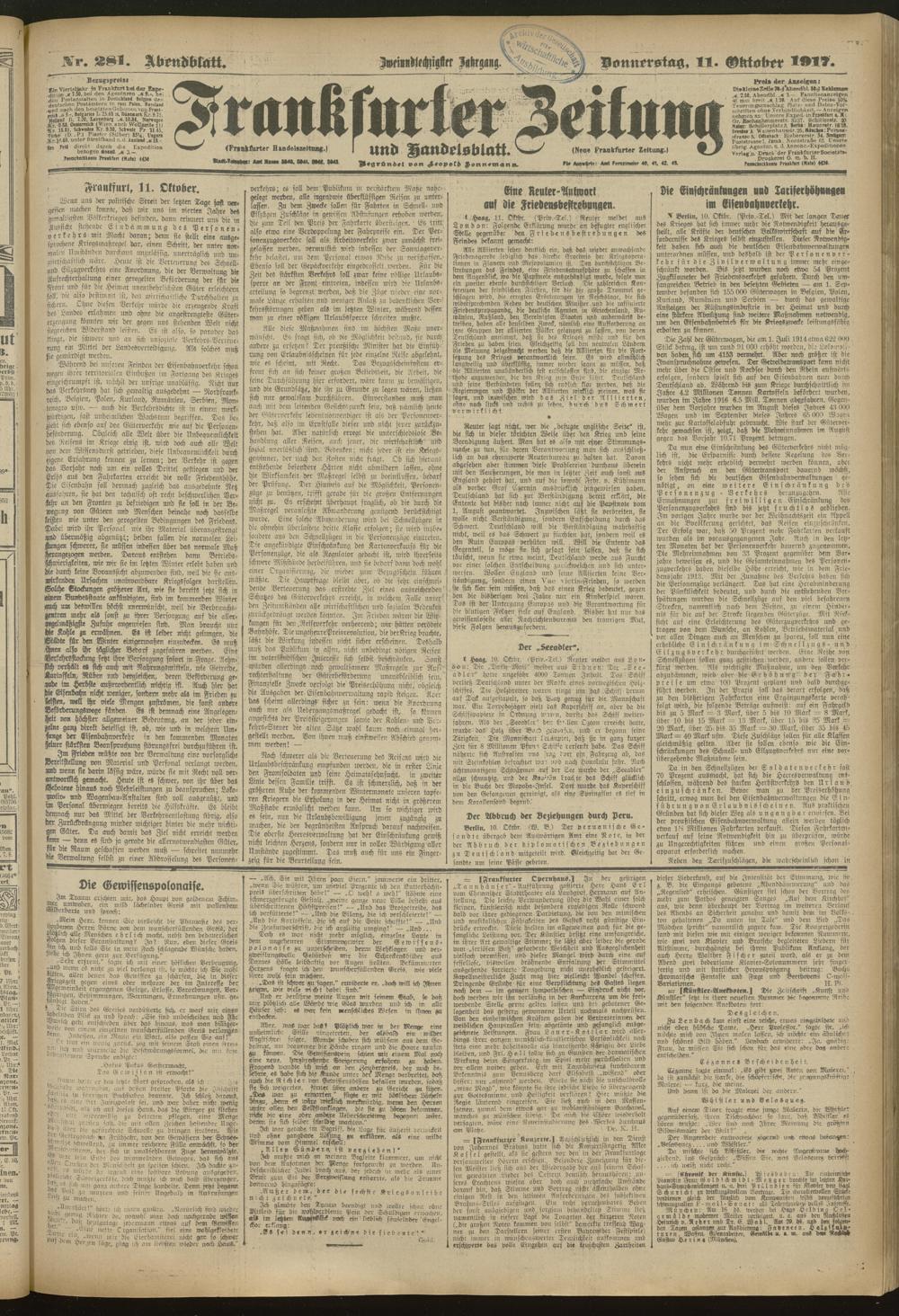 11.10.1917 = Nr. 281. Abendblatt