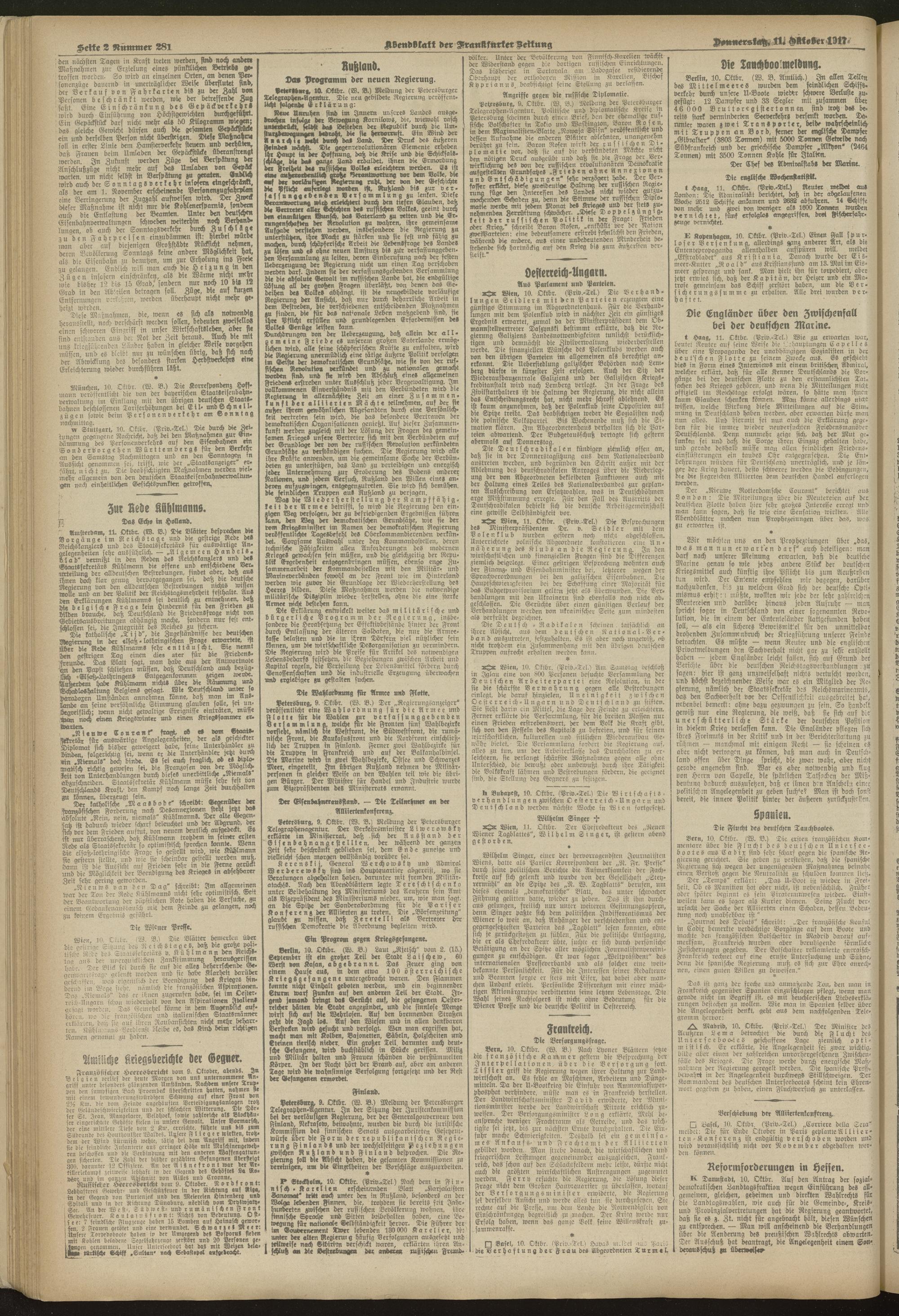 11.10.1917 = Nr. 281. Abendblatt
