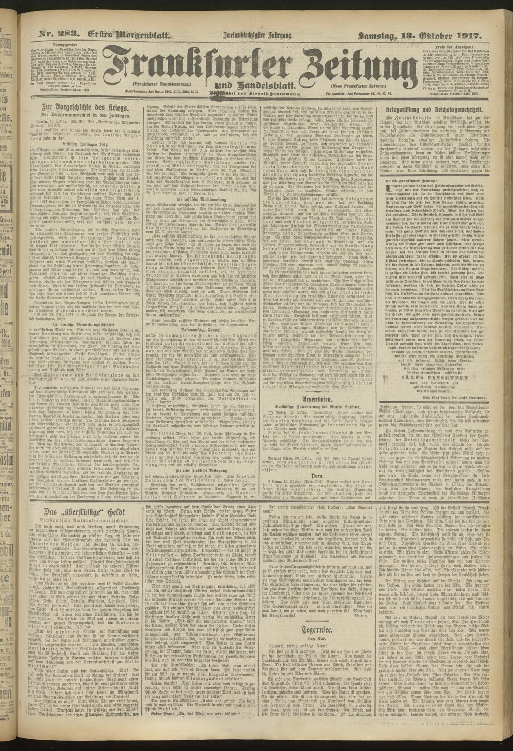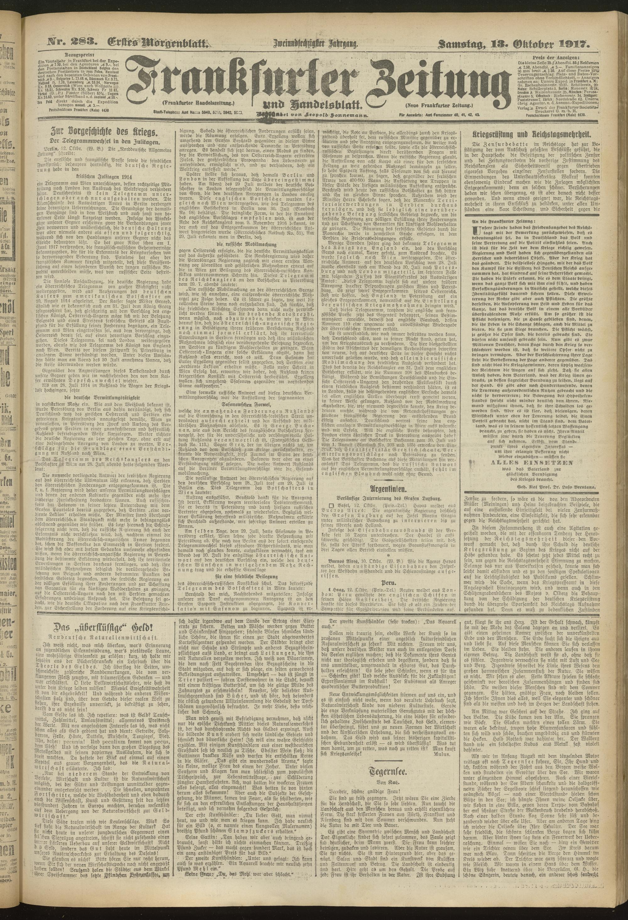 13.10.1917 = Nr. 283. Erstes Morgenblatt