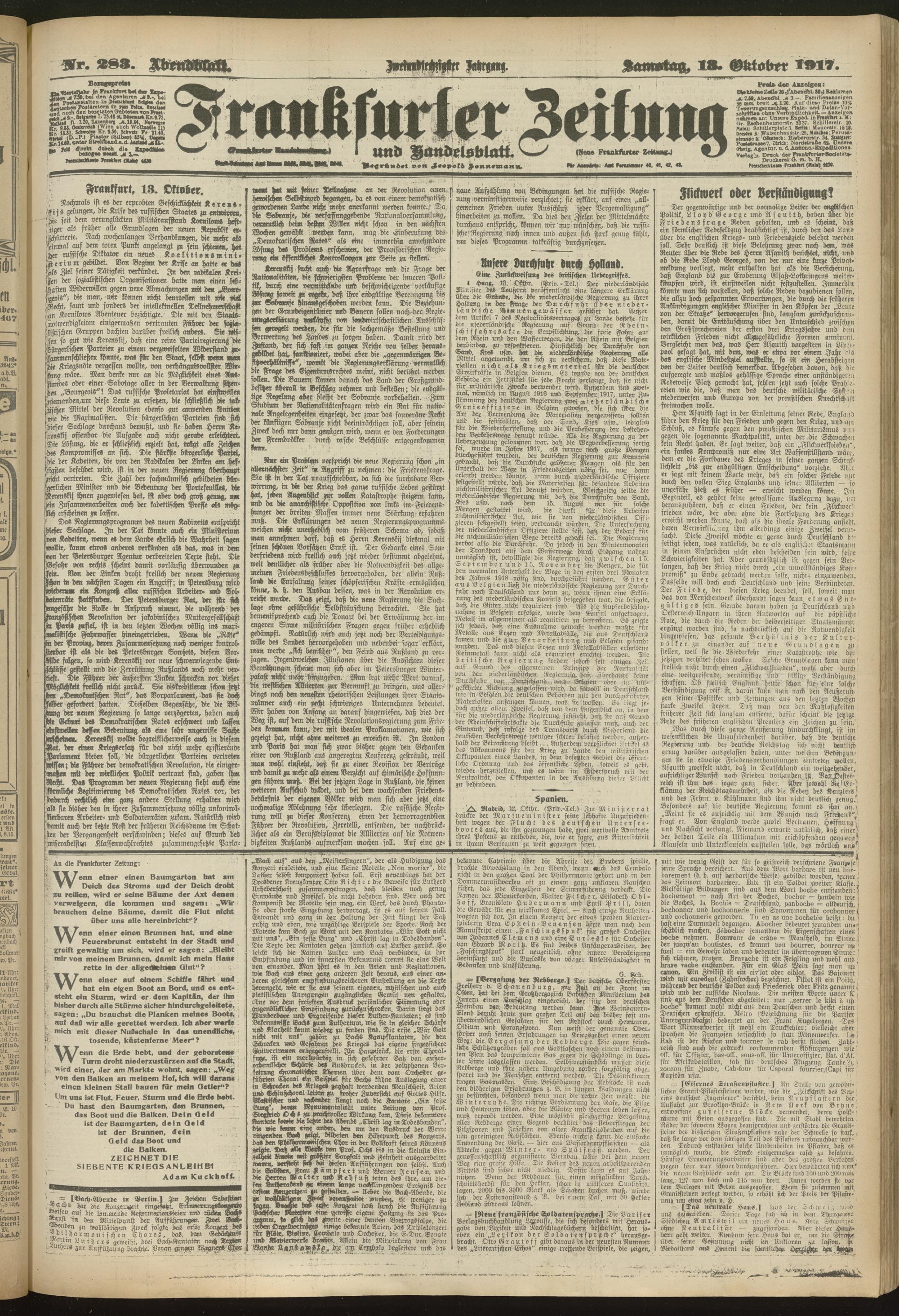 13.10.1917 = Nr. 283. Abendblatt