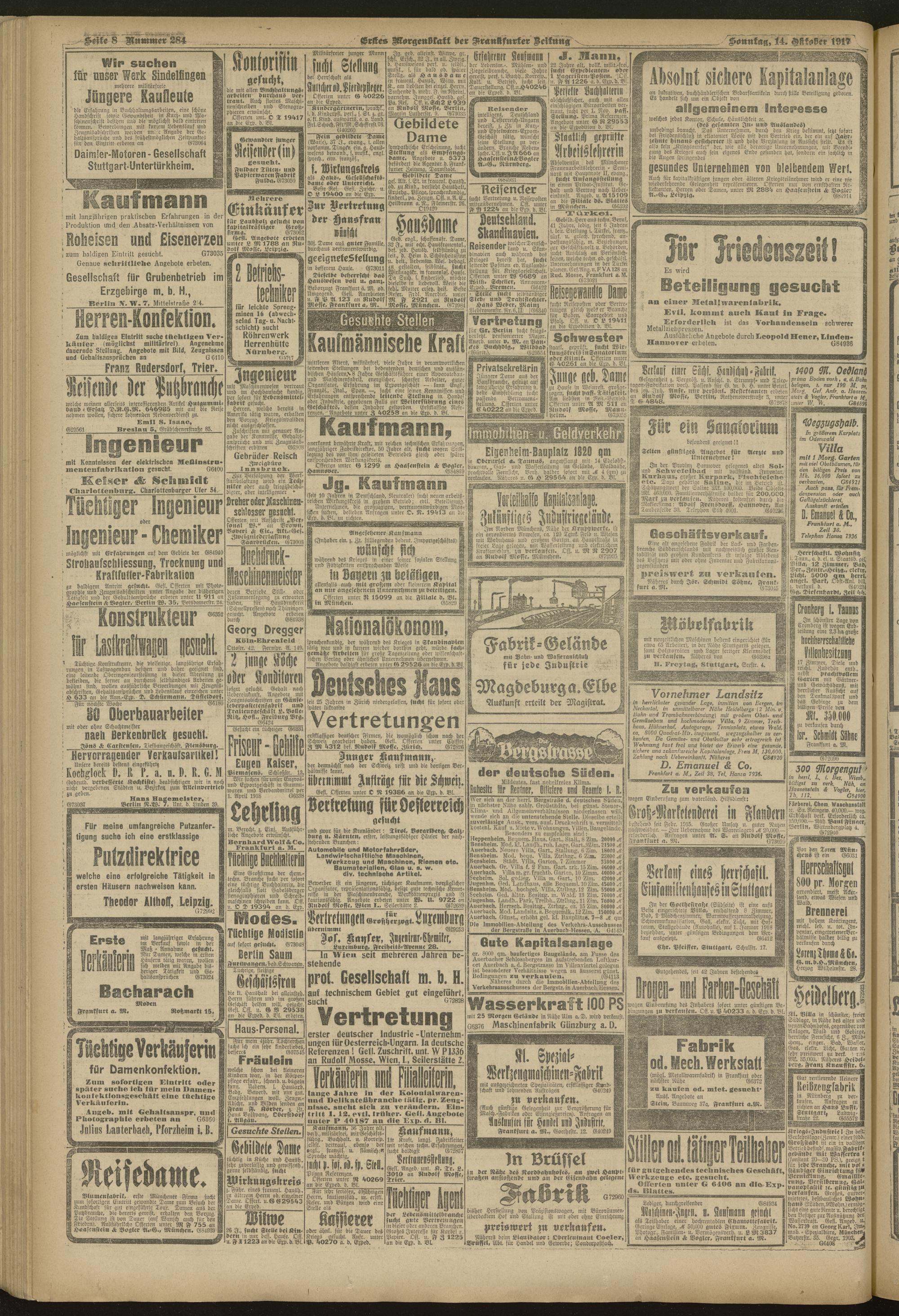 14.10.1917 = Nr. 284. Erstes Morgenblatt