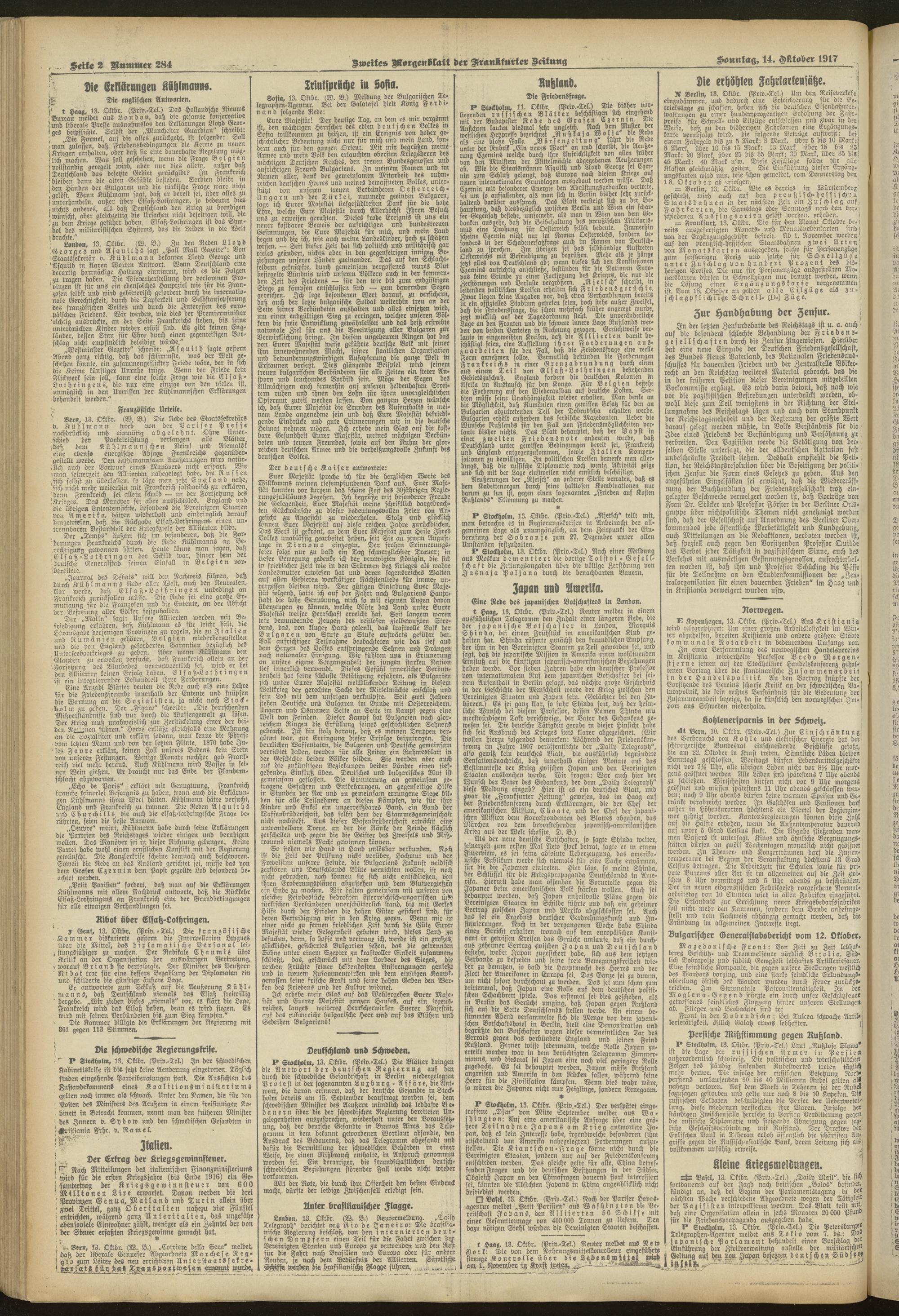 14.10.1917 = Nr. 284. Zweites Morgenblatt