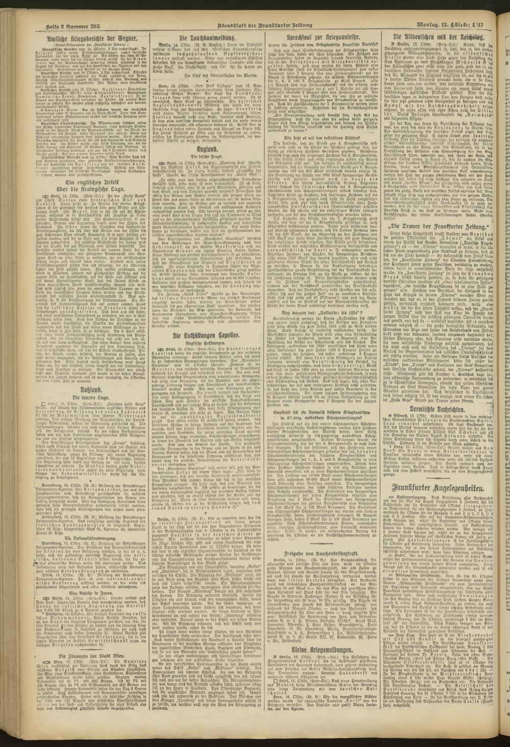 15.10.1917 = Nr. 285. Abendblatt
