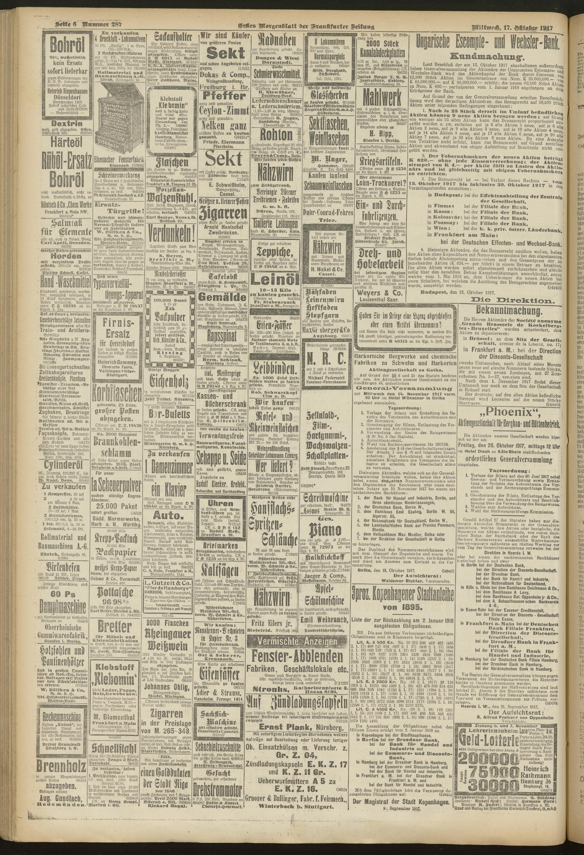 17.10.1917 = Nr. 287. Erstes Morgenblatt