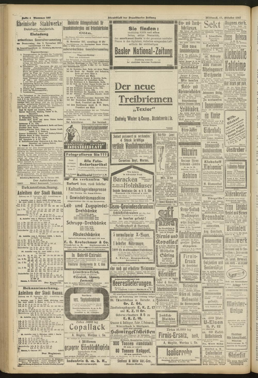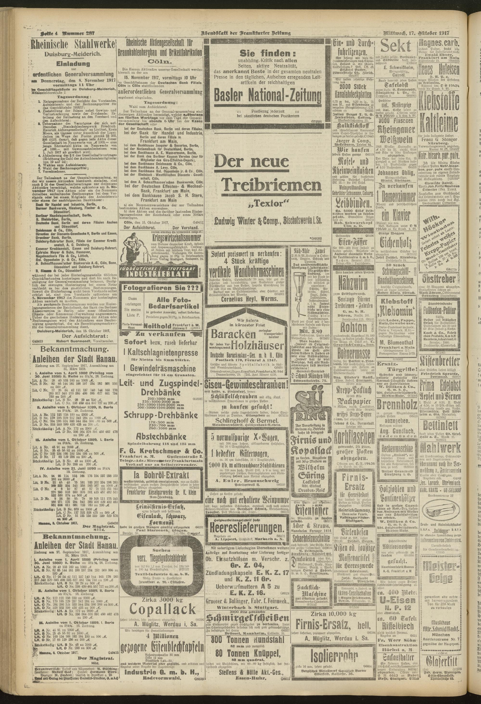 17.10.1917 = Nr. 287. Abendblatt