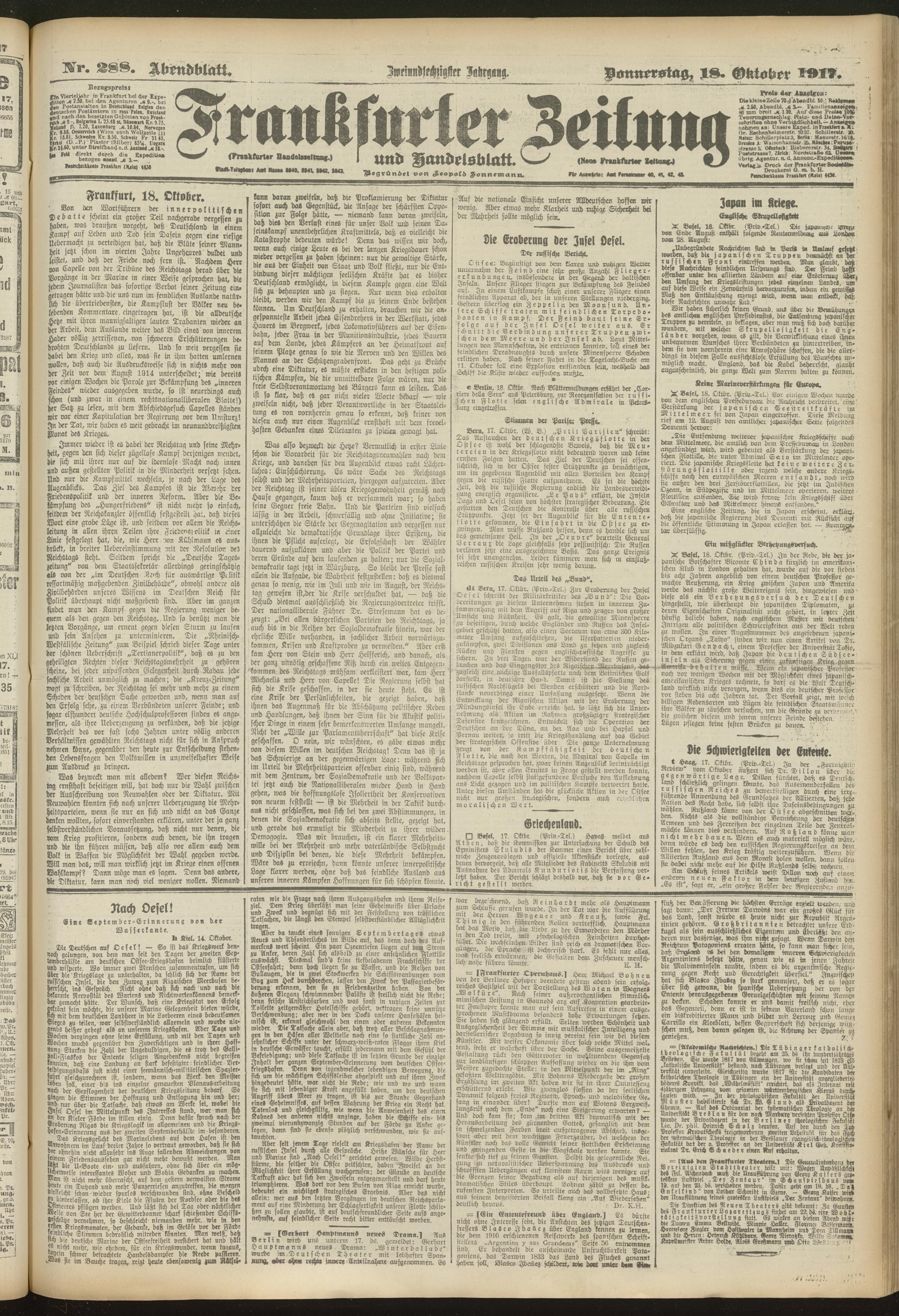 18.10.1917 = Nr. 288. Abendblatt