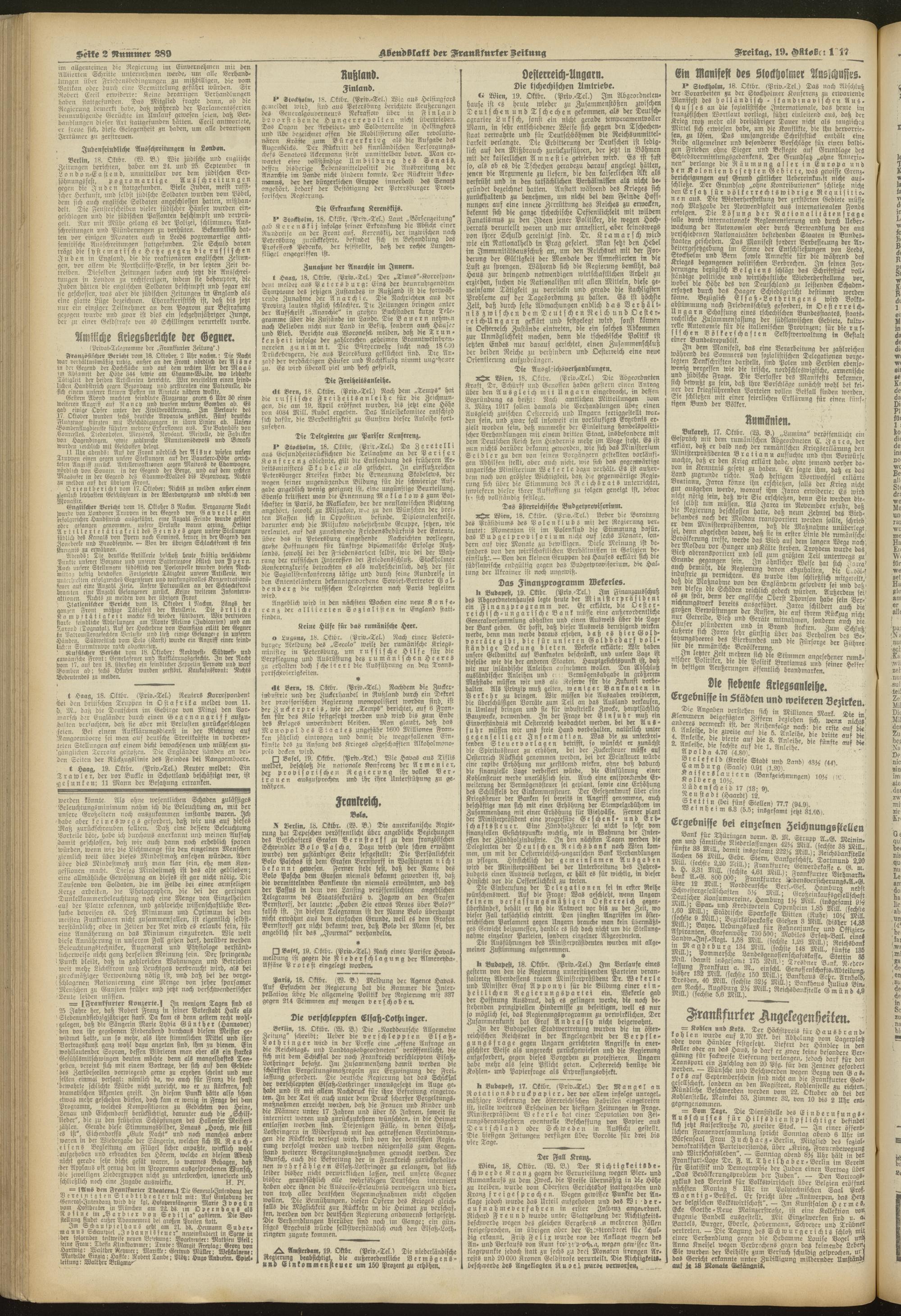 19.10.1917 = Nr. 289. Abendblatt